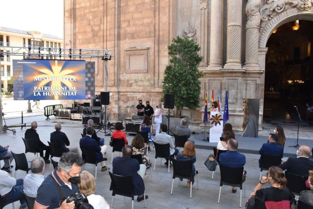 El alcalde de Elche, Carlos González; el embajador delegado permanente de España ante la Unesco, Andrés Perelló; la consellera de Desarrollo Rural y Transición Ecológica, Mireia Mollà; el presidente ejecutivo del Patronato del Misteri d’Elx, Francisco Borja; y el rector del templo, Ángel Bonavía, han rememorado aquel lejano día primaveral de 2001.