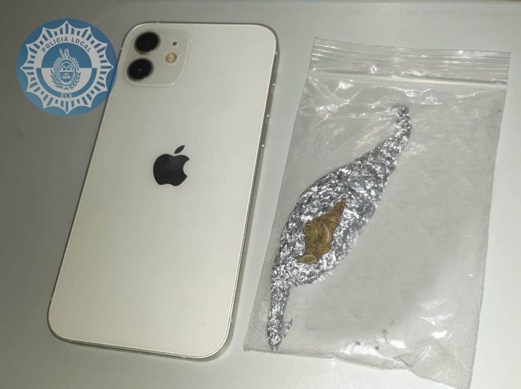 Cabe destacar que, sobre la 1:30 de la madrugada, uno de los Equipos Operativos de Seguridad (EOS) observó a un joven que, al percatarse de la presencia de los Agentes, arrojó un envoltorio de aluminio que resultó contener una pequeña cantidad de hachís, comprobándose en el transcurso de la intervención, que el joven, de 18 años, portaba un teléfono móvil marca Apple, modelo Iphone 12, valorado en 790€, cuya sustracción había sido denunciada en Alicante el pasado 30 de julio, por lo que procedió a su detención.