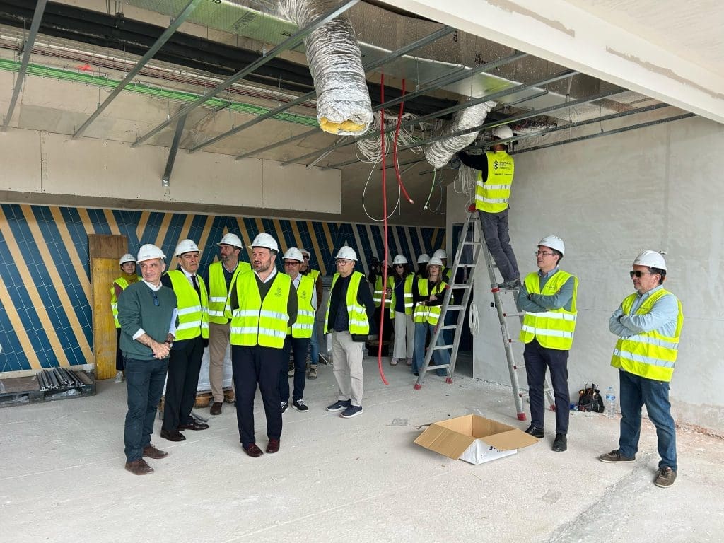 El alcalde de Elche, Pablo Ruz, ha visitado este jueves las obras de construcción del nuevo pabellón de deporte inclusivo en la zona de L’Aljub, junto al vicealcalde, Francisco Soler, el concejal de Deportes, José Antonio Román y técnicos municipales.