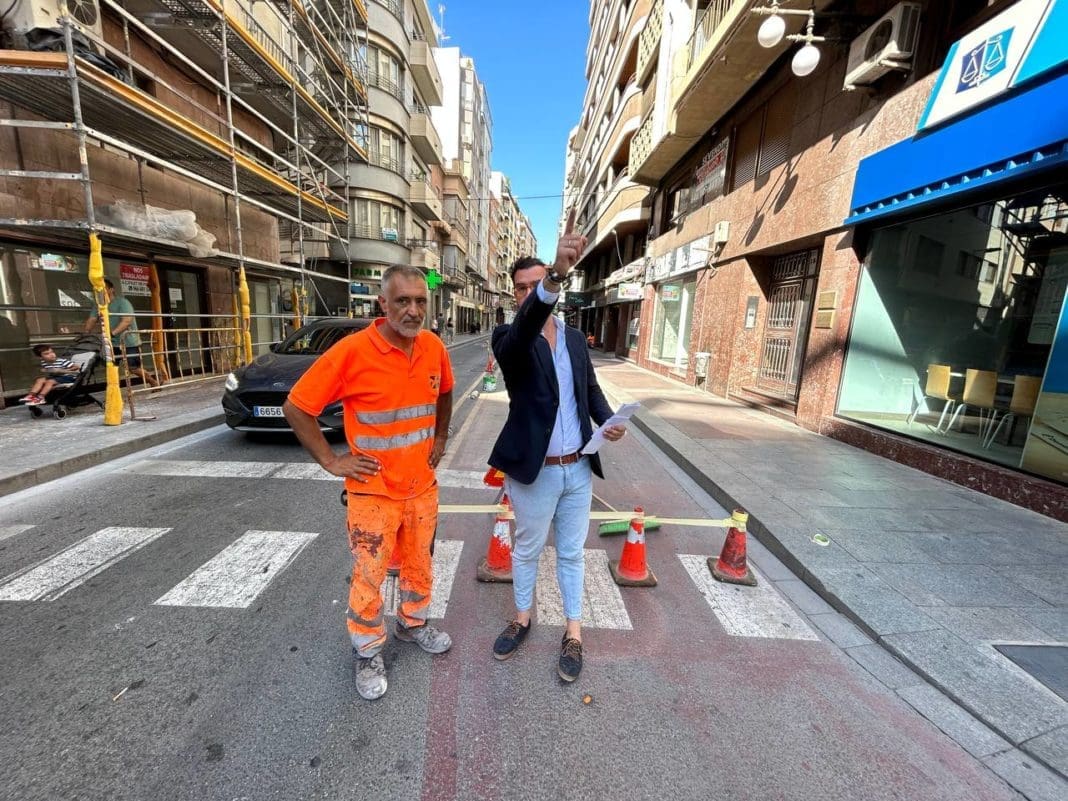 Desde primera hora de la mañana, el Ayuntamiento de Elche está procediendo a la retirada del carril bici en la calle Juan Carlos I en el tramo hasta la Plaza de Benidorm.