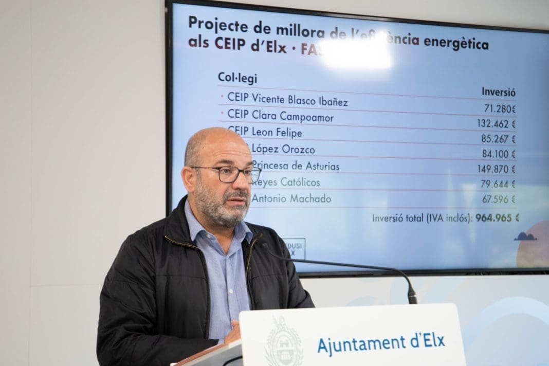 “Desde la concejalía de Eficiencia Energética hoy os presentamos la línea de subvención de 964.000 euros de Fondos Europeos Edusi correspondiente a edificios municipales y que vamos a destinar que todos los colegios públicos de Elche cuenten con energía renovable, en este caso fotovoltaica”, ha señalado Felip Sànchez.