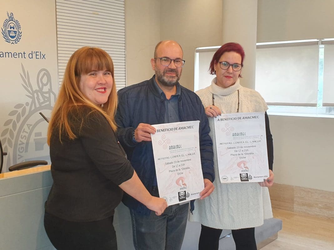 La Glorieta acoge este sábado un mercadillo solidario a favor de la lucha contra el cáncer de mama, apoyado por el Ayuntamiento de Elche y la Asociación Literaria Cultura (ALC) “La estación de las palabras”, en el que los interesados podrán comprar libros, obras de arte, así como disfrutar de un ambiente festivo, además de contribuir con una buena causa. Todos los fondos recaudados irán a parar a la Asociación De Mujeres Afectadas por el Cáncer De Mama (AMACMEC). Así lo ha explicado en rueda de prensa esta mañana el concejal de Comercio, Felip Sánchez, acompañado de Beatriz Segarra y Ana Esmeralda, presidenta y vicepresidenta de la asociación respectivamente.