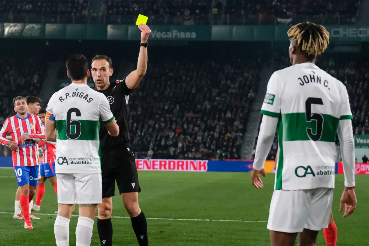 El Elche se muestra molesto por la expulsión por doble amarilla de Germán Valera y la no sanción por acciones similares de varios jugadores del Huesca.
