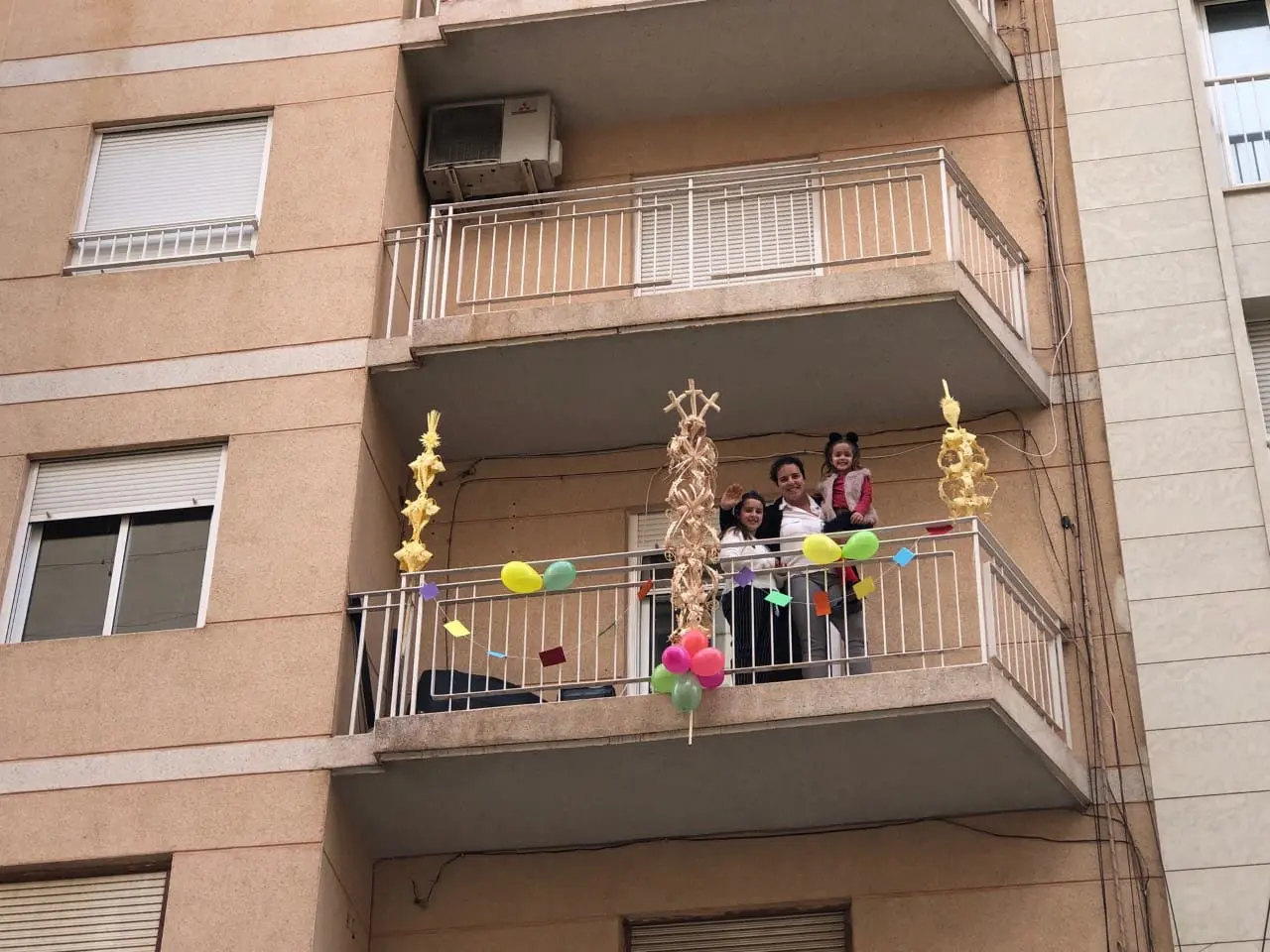 Elche ha celebrado esta mañana desde los balcones y ventanas el tradicional Domingo de Ramos, una festividad que reúne a miles de personas en procesión por las calles de la ciudad y que este año no ha podido llevarse a cabo debido a la emergencia sanitaria por el coronavirus.