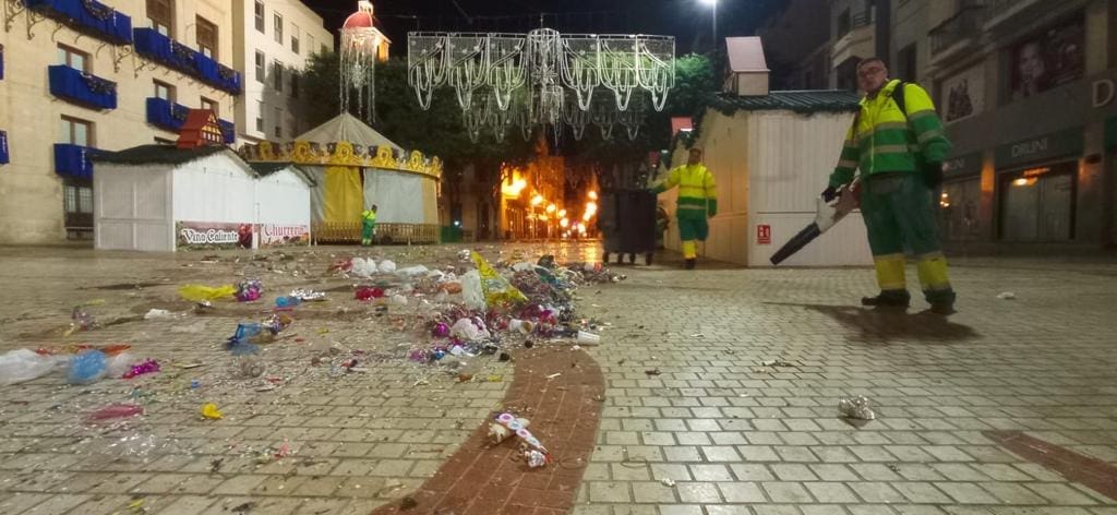 La empresa de limpieza municipal, UTE Elche, ha destacado que el operativo especial de servicios de limpieza, recogió más de 200.000 kilos de residuos durante la mañana del 1 de enero, festivo nacional no laborable.