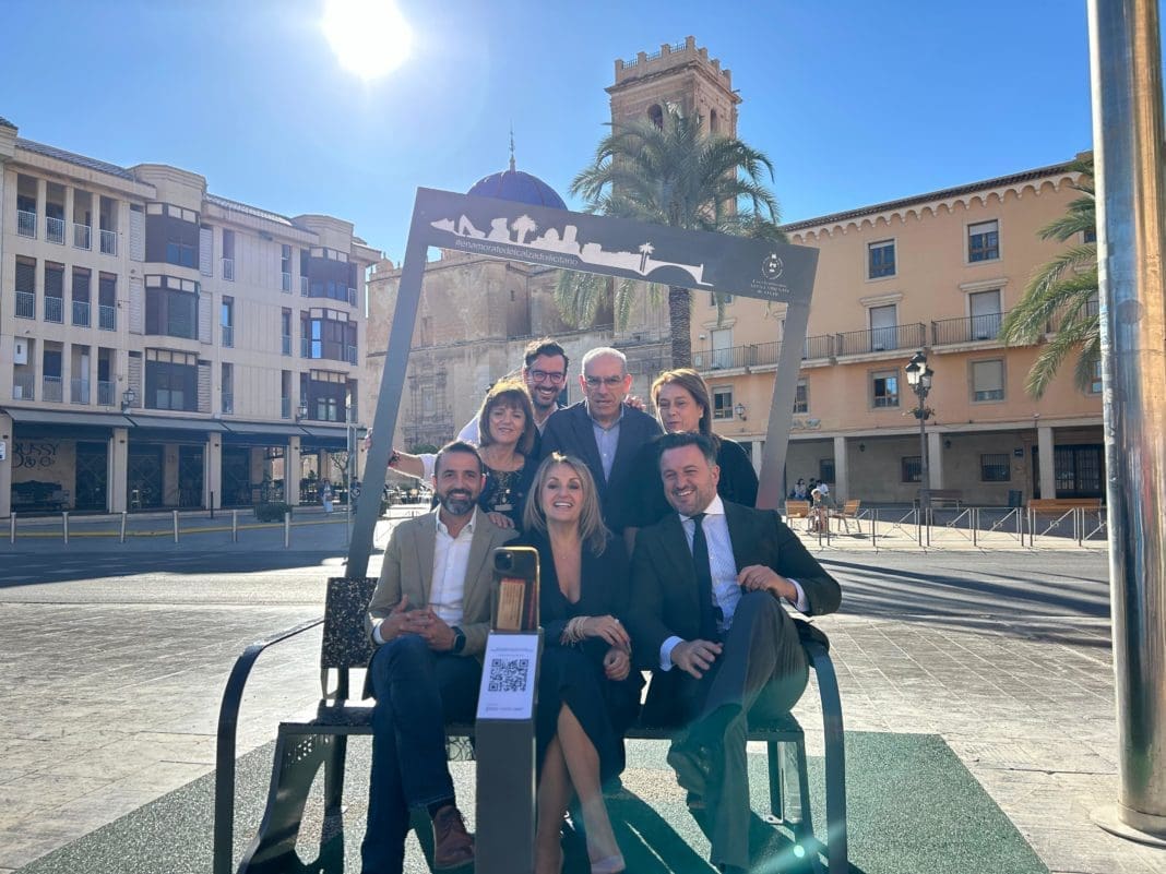 El Ayuntamiento de Elche, junto a INESCOP e IVACE+I y con la colaboración de Synthelast, ha inaugurado este viernes un nuevo banco fabricado con material reciclado procedente de más de 300 pares de zapatos de la industria del calzado ilicitana. Un nuevo elemento del mobiliario urbano de la ciudad que a partir de hoy puede encontrarse en la zona de Traspalacio.