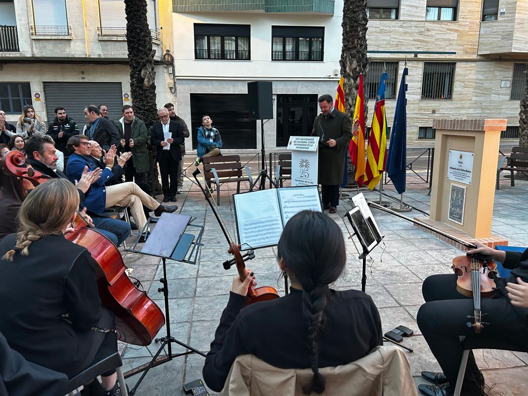 Elche ha celebrado esta tarde el acto institucional por el XXV aniversario de la declaración del palmeral de Elche como patrimonio de la Humanidad. En el acto se ha dedicado un espacio a los artesanos de la palma blanca el espacio público existente en la Plaza del Rey Jaime I como homenaje de gratitud a este colectivo como reconocimiento público permanente a su labor.