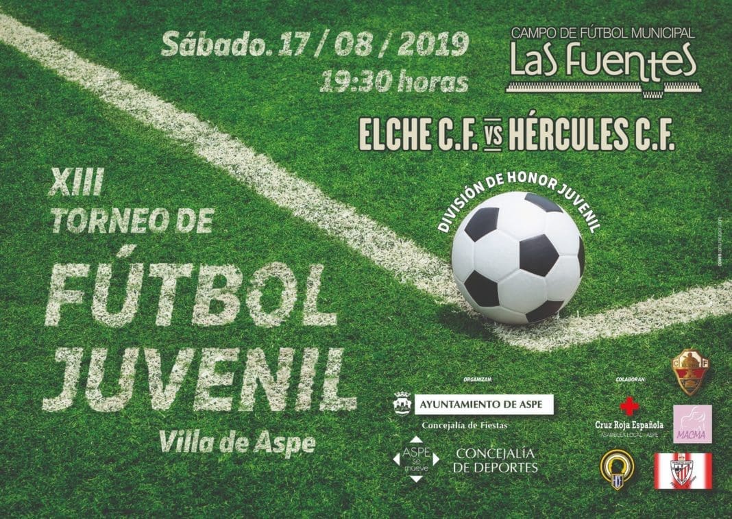 El fútbol de cantera del más alto nivel vuelve este sábado, 17 de agosto, al campo de fútbol municipal de Las Fuentes, con ocasión del Torneo de Fútbol Juvenil “Villa de Aspe”, un evento tradicionalmente organizado por la Peña El Chopo del Athletic Club de Bilbao y por la Concejalía de Deportes durante las Fiestas Patronales de la localidad.