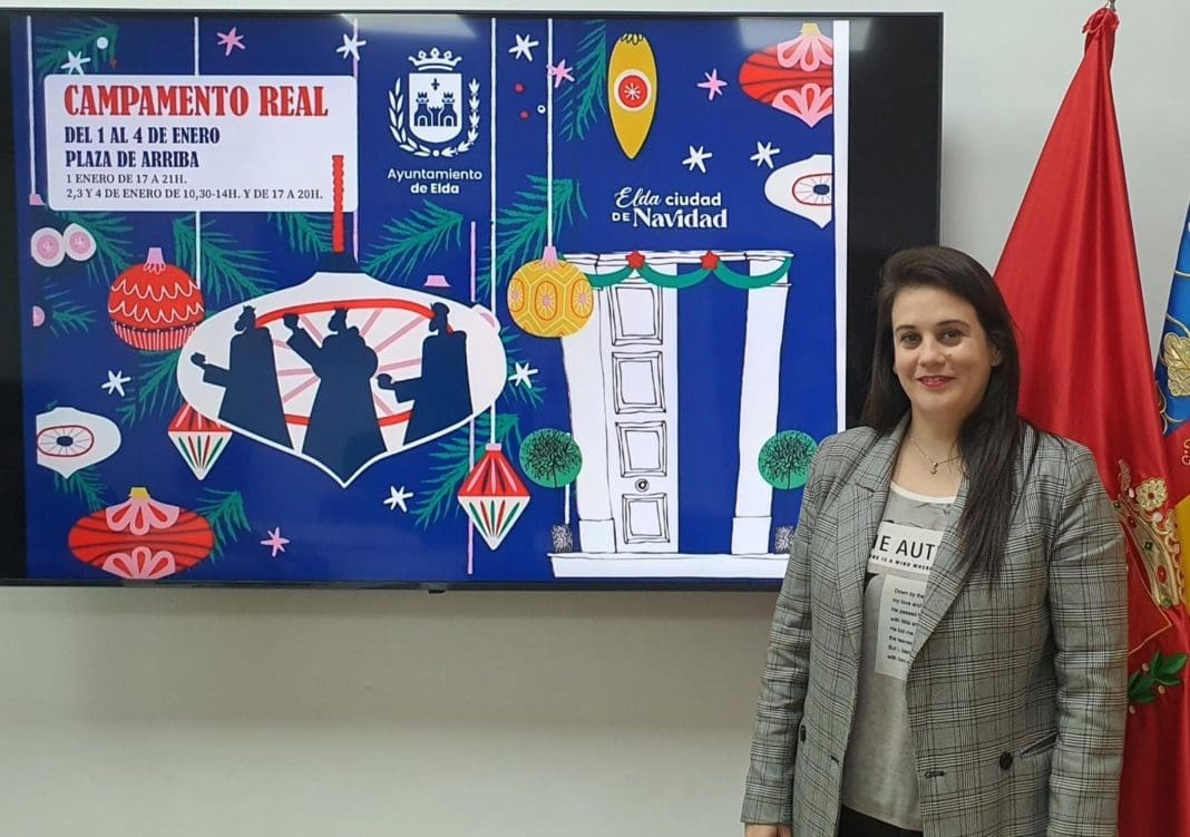 La concejala de Fiestas, Lorena Pedrero, ha presentado el Campamento Real, una de las nuevas actividades incluidas este año en la programación navideña de Elda.