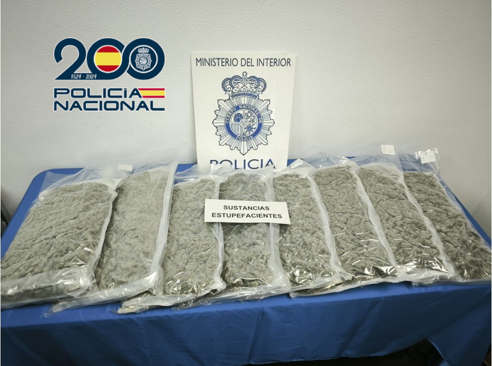 Agentes de la Policía Nacional han detenido en la localidad de Elda a una pareja, hombre y mujer, como presuntos autores de un delito de tráfico de drogas. Los detenidos fueron interceptados tras un control policial. Iban a bordo de un vehículo transportando más de nueve kilos de cogollos de marihuana ocultos en el maletero.