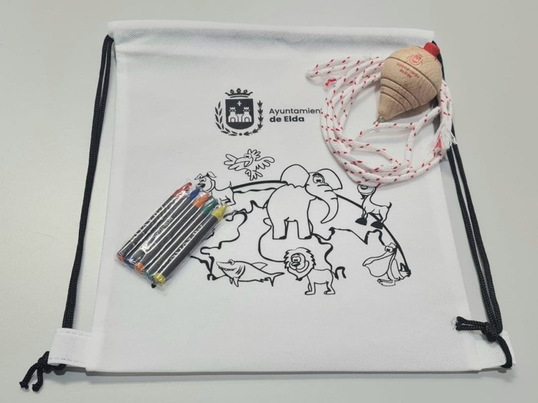 Por su parte, las mochilas también incorporan el escudo del Ayuntamiento de Elda, así como unos dibujos que los pequeños y pequeñas pueden colorear con la caja de pinturas incluida en el interior de la mochila.