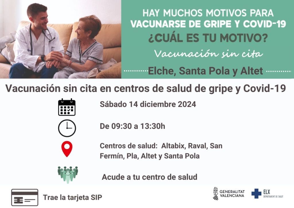 Los centros de salud que vacunarán sin cita el próximo sábado son: Altabix Raval, San Fermín, el Pla, el Altet y Santa Pola.