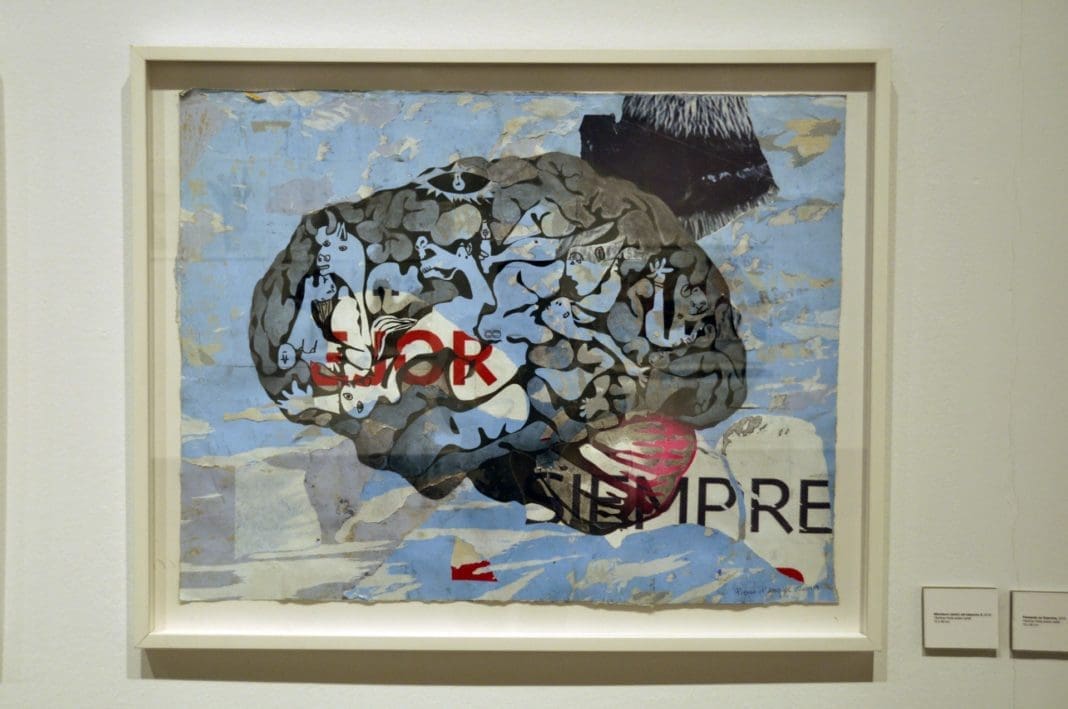 En la exposición, que tiene por título “Pierre D’Argyl, Arte con Neuronas”, y que puede verse en la Sala de La Lonja de Alicante hasta el próximo día 29 de octubre, podemos contemplar una pieza del mismo tamaño del famoso Guernica realizado con carteles y recortes, utilizando la técnica del collage, y en el que están representados todos los elementos del cuadro original.