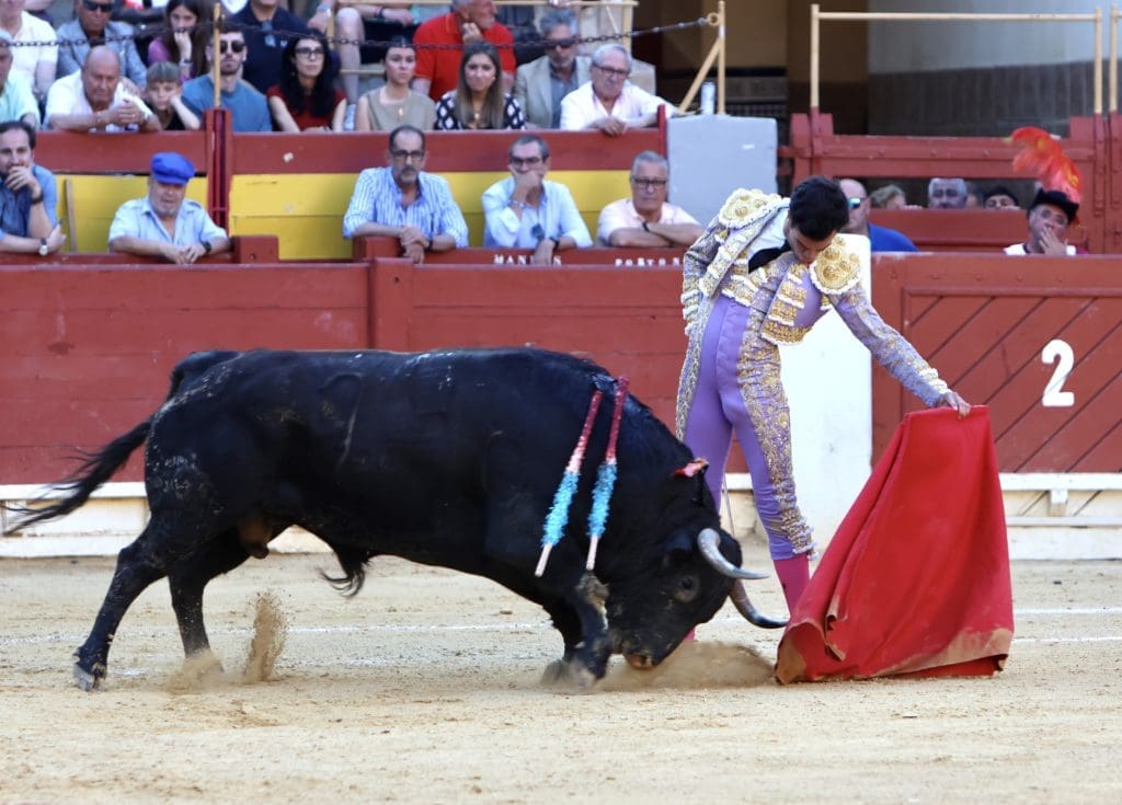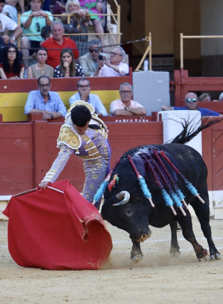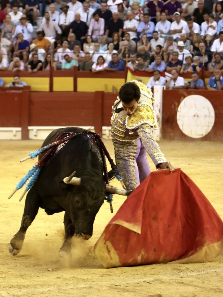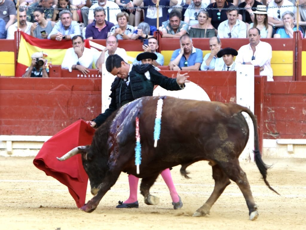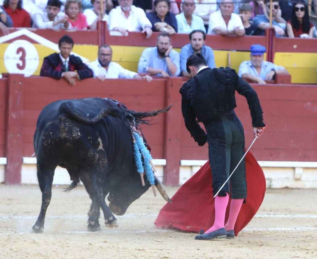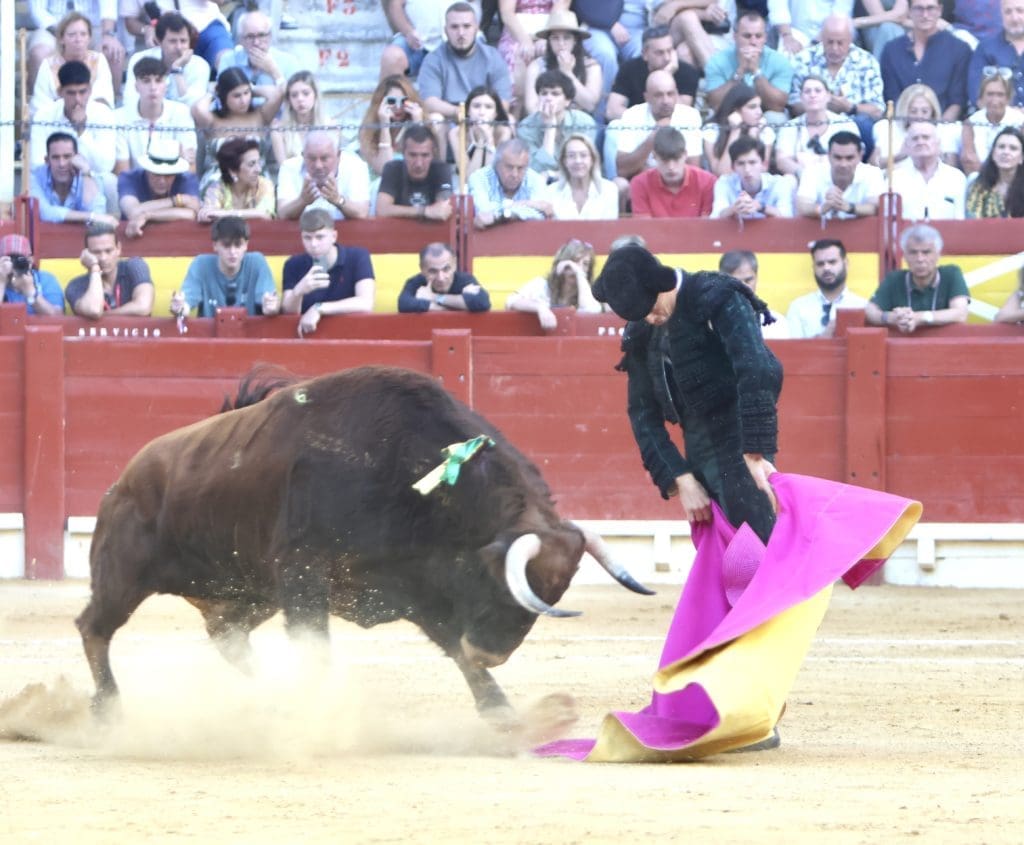 El balance quedó en oreja (con aviso) para el torero, y gran ovación para el toro en el arrastre. No llegó a tomar verdadero vuelo el trasteo del gaditano al serio quinto, al que le costó ir tras las telas, pero al que Galván expuso y despachó a la primera, necesitando, eso sí, de un golpe de verduguillo. Una generosa oreja le abrió la puerta grande de Alicante.