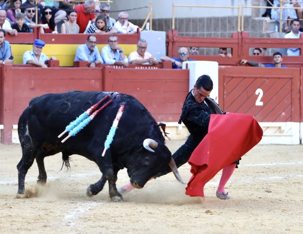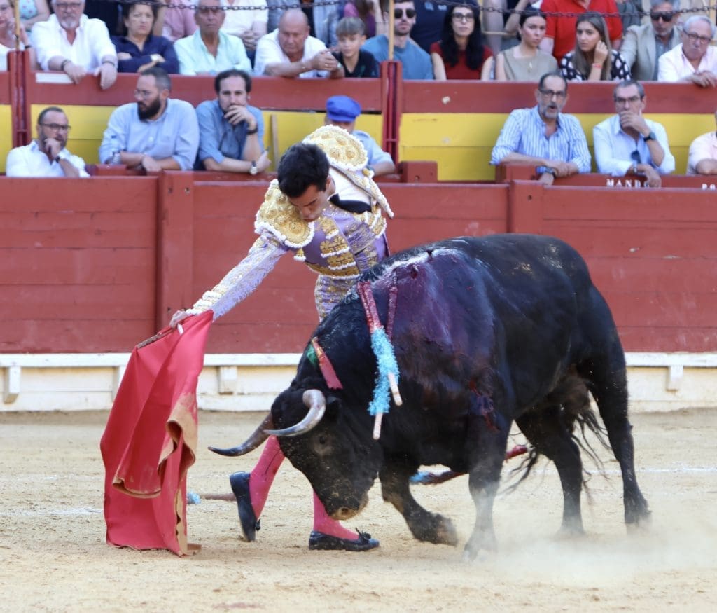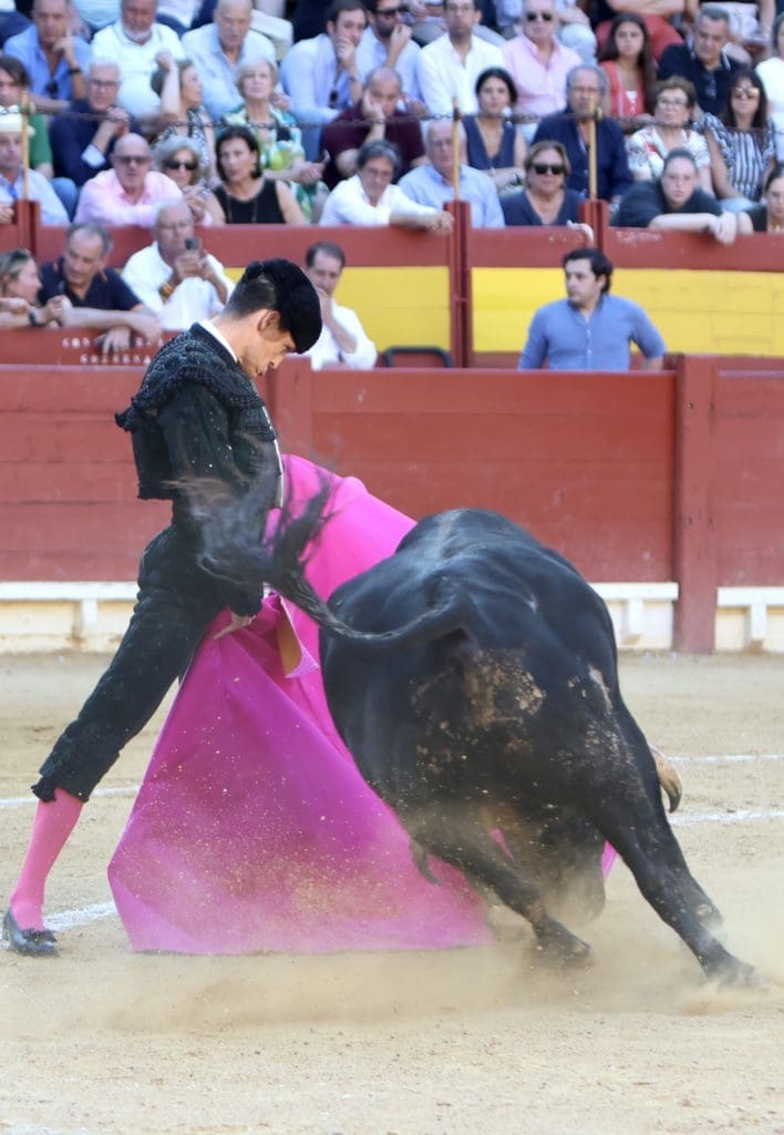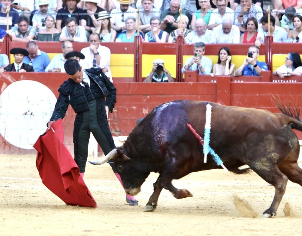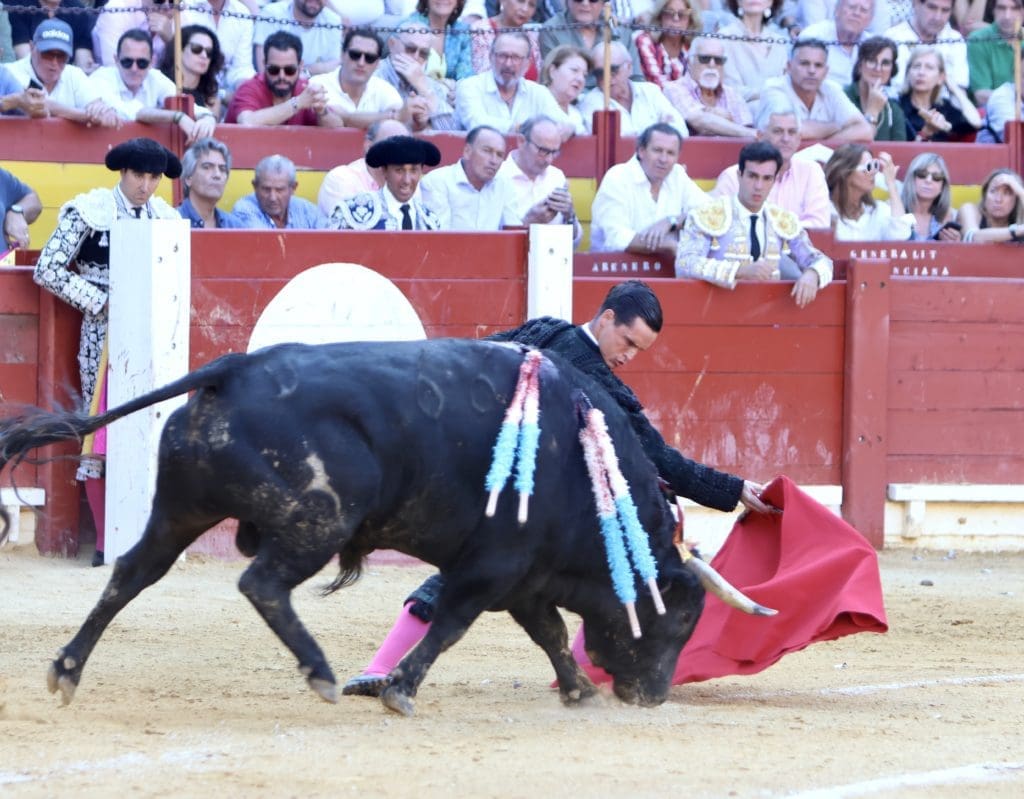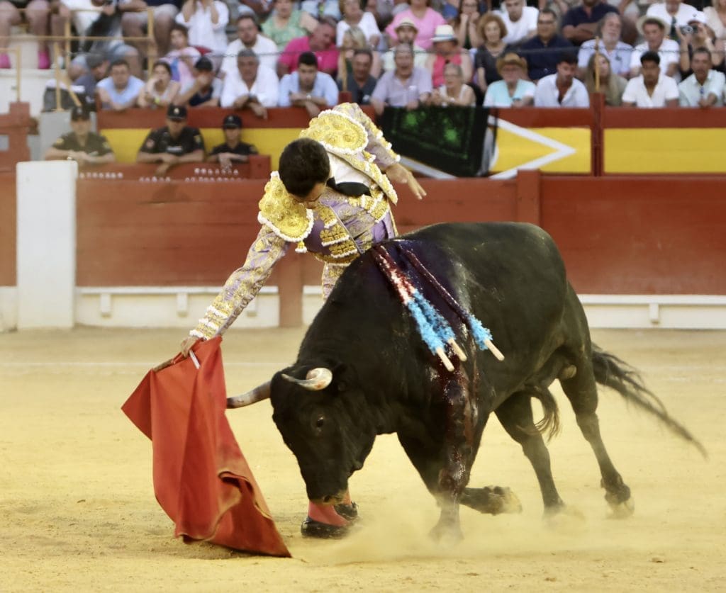 El balance quedó en oreja (con aviso) para el torero, y gran ovación para el toro en el arrastre. No llegó a tomar verdadero vuelo el trasteo del gaditano al serio quinto, al que le costó ir tras las telas, pero al que Galván expuso y despachó a la primera, necesitando, eso sí, de un golpe de verduguillo. Una generosa oreja le abrió la puerta grande de Alicante.