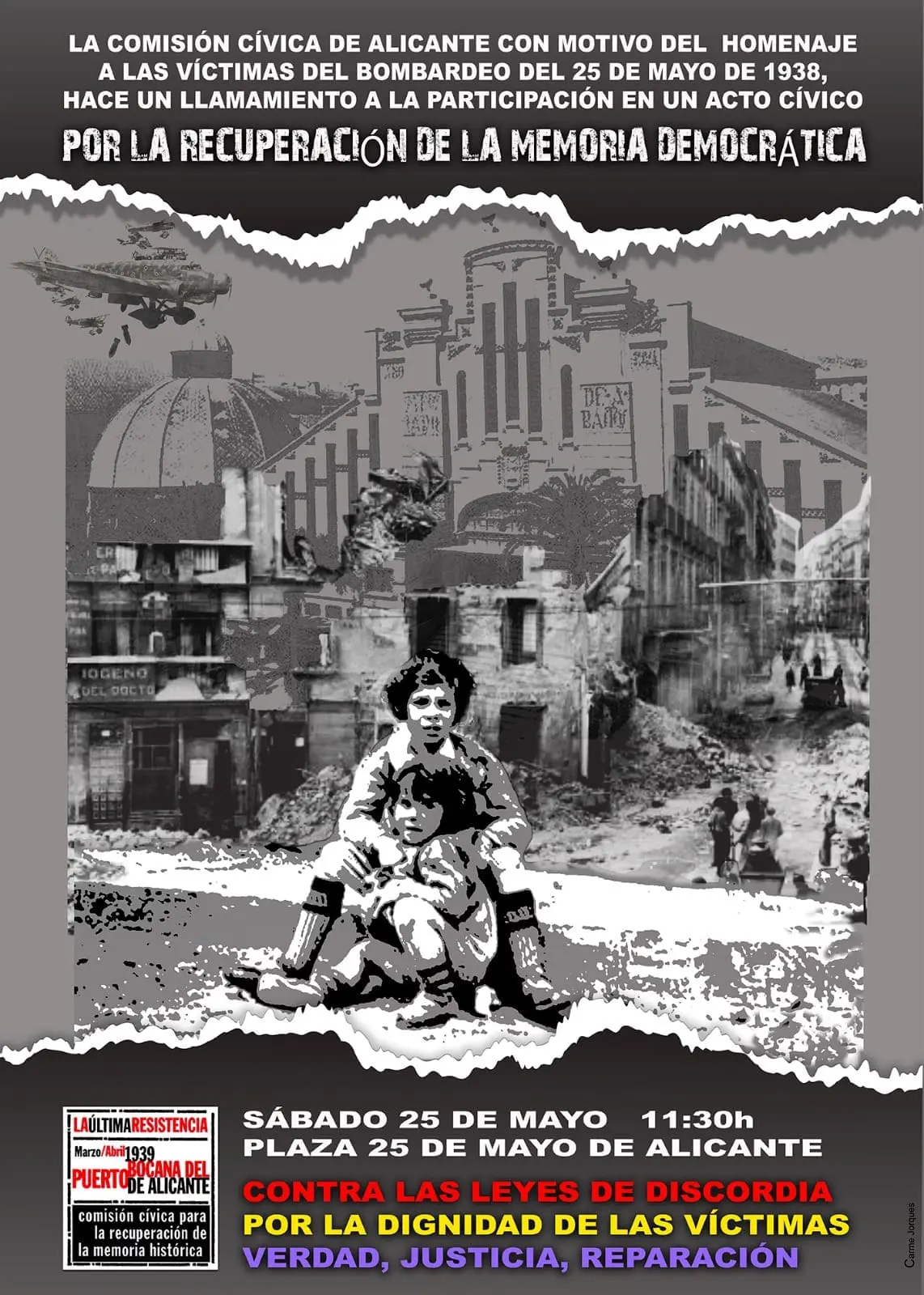 La representación de la Comissió ha concluido el acto añadiendo que la Ley de Concordia «impide que los familiares de las víctimas del franquismo encuentren a sus parientes y puedan curar la herida causada por la represión»; por lo que han convocado una concentración el 28 de mayo a las 19 horas delante de la delegación del Consell en Alicante para expresar el rechazo a dicha ley.