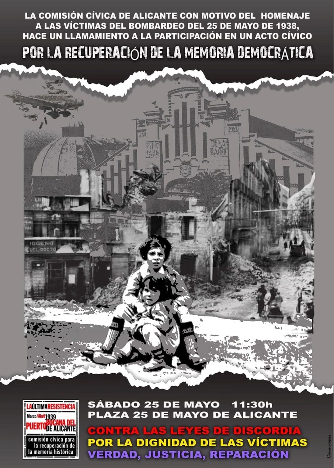 Las entidades cívicas en el acto de conmemoración del bombardeo del 25 de mayo de 1938 en el Mercado Central de Alicante han advertido del «peligro» de la vuelta de la extrema derecha a las instituciones y sus medidas de «desmemoria» y «blanqueo del franquismo», al tiempo que han condenado el genocidio en Gaza.