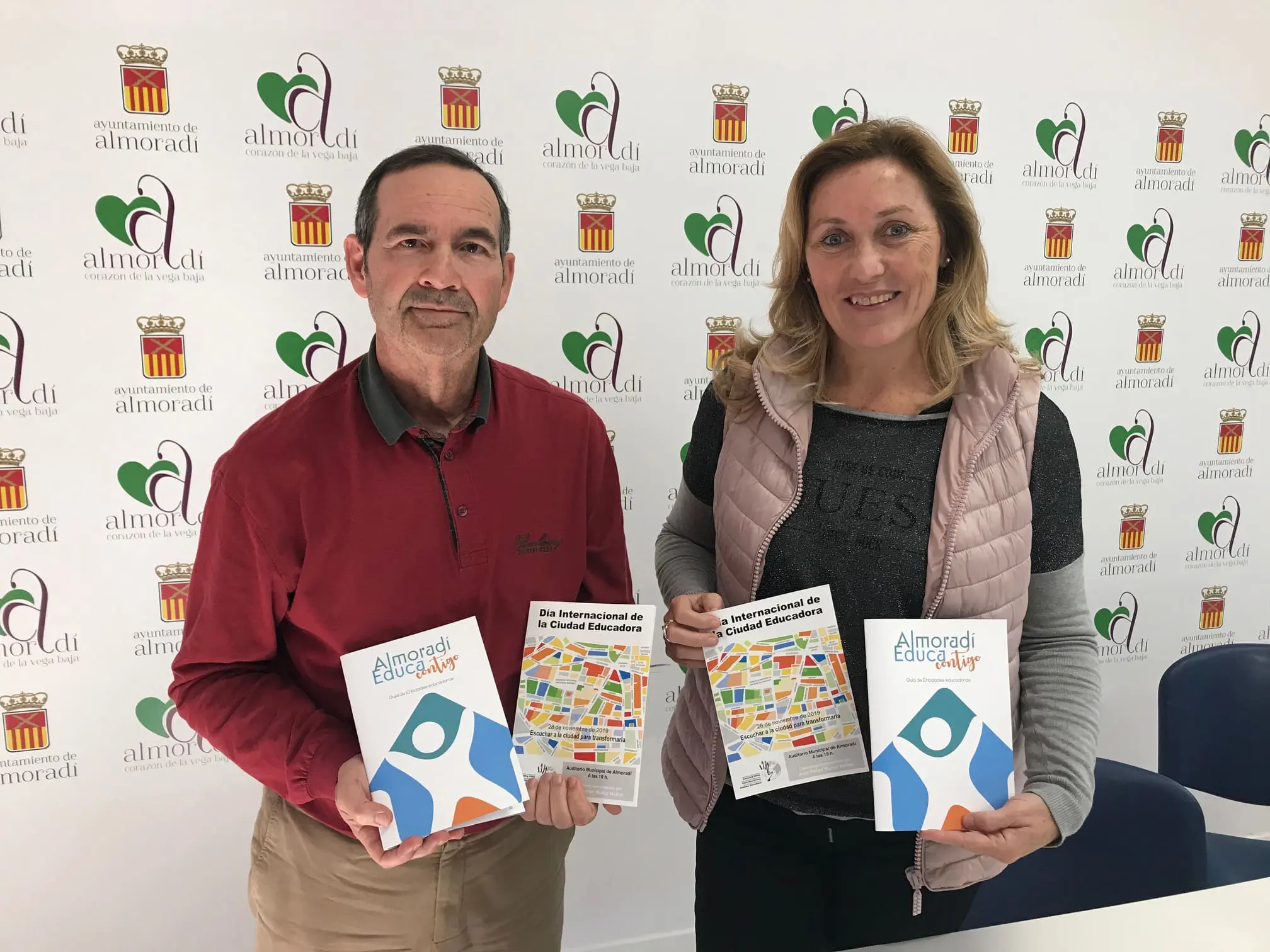 La concejal de Educación, Susana Miralles, acompañada por Alfonso Soriano, presidente de FUNDESCED, (Fundación para el Desarrollo de la Sanidad, Cultura, Educación y Deporte de la Vega Baja de la Comunidad Valenciana) ha presentado la Guía de Entidades Educadoras “Almoradí Educa Contigo”, una iniciativa que se engloba dentro del proyecto de Almoradí Ciudad Educadora, y que se ha elaborado con motivo de la conmemoración del Día Internacional de las Ciudades Educadoras, donde en esta ocasión también se premió el rendimiento académico, por parte de la consellería, reconociendo a su vez desde el Ayuntamiento a las entidades que educan de manera complementaria a la oferta formal de educación en la localidad.