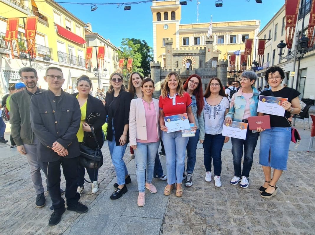 La concejala de Comercio y Mercados, Silvia Ibáñez, y el presidente de la Asociación de Empresarios de Elda (AEDE), Manuel Carpio, han entregado esta mañana los premios del I Concurso de Escaparates Moros y Cristianos de Elda organizado por el Ayuntamiento de Elda y AEDE.