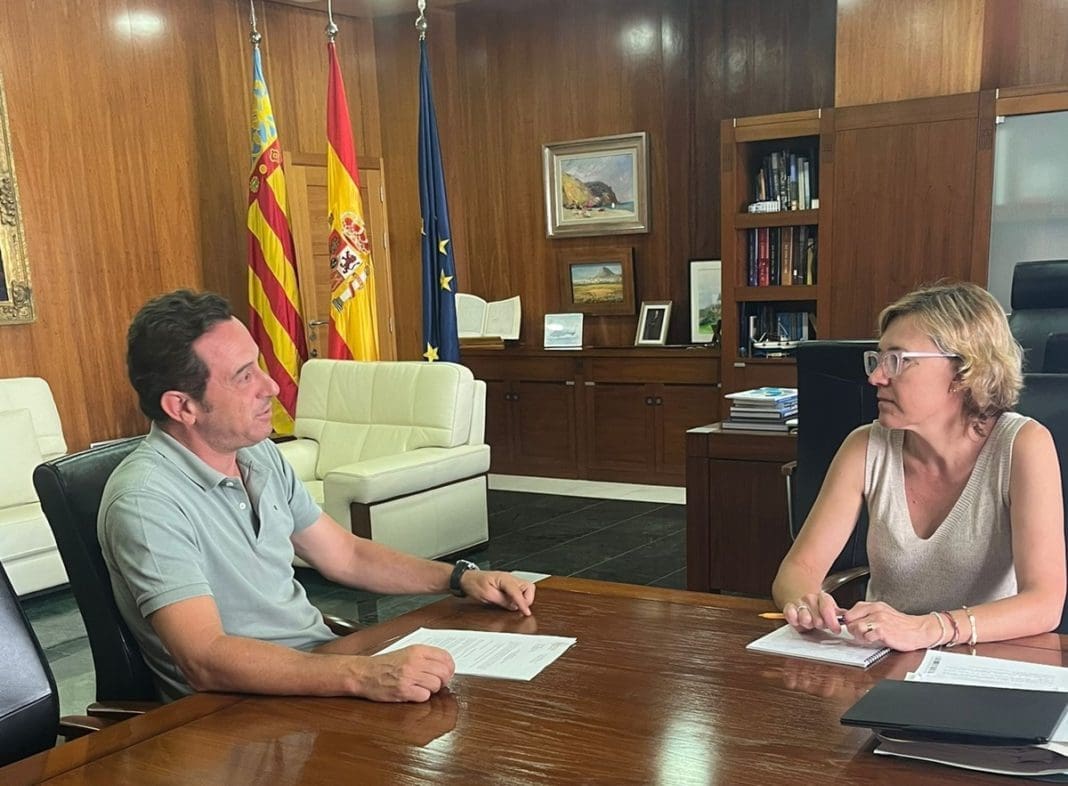 La alcaldesa Rosa Cardona ha mantenido hoy una reunión de trabajo con el gerente de la Entidad Pública de Saneamiento de Aguas Residuales (EPSAR), José Aparicio. Durante el encuentro, se ha realizado un análisis exhaustivo de las instalaciones de la EBAR del Arenal y el seguimiento al expediente del terciario de la EPSAR.