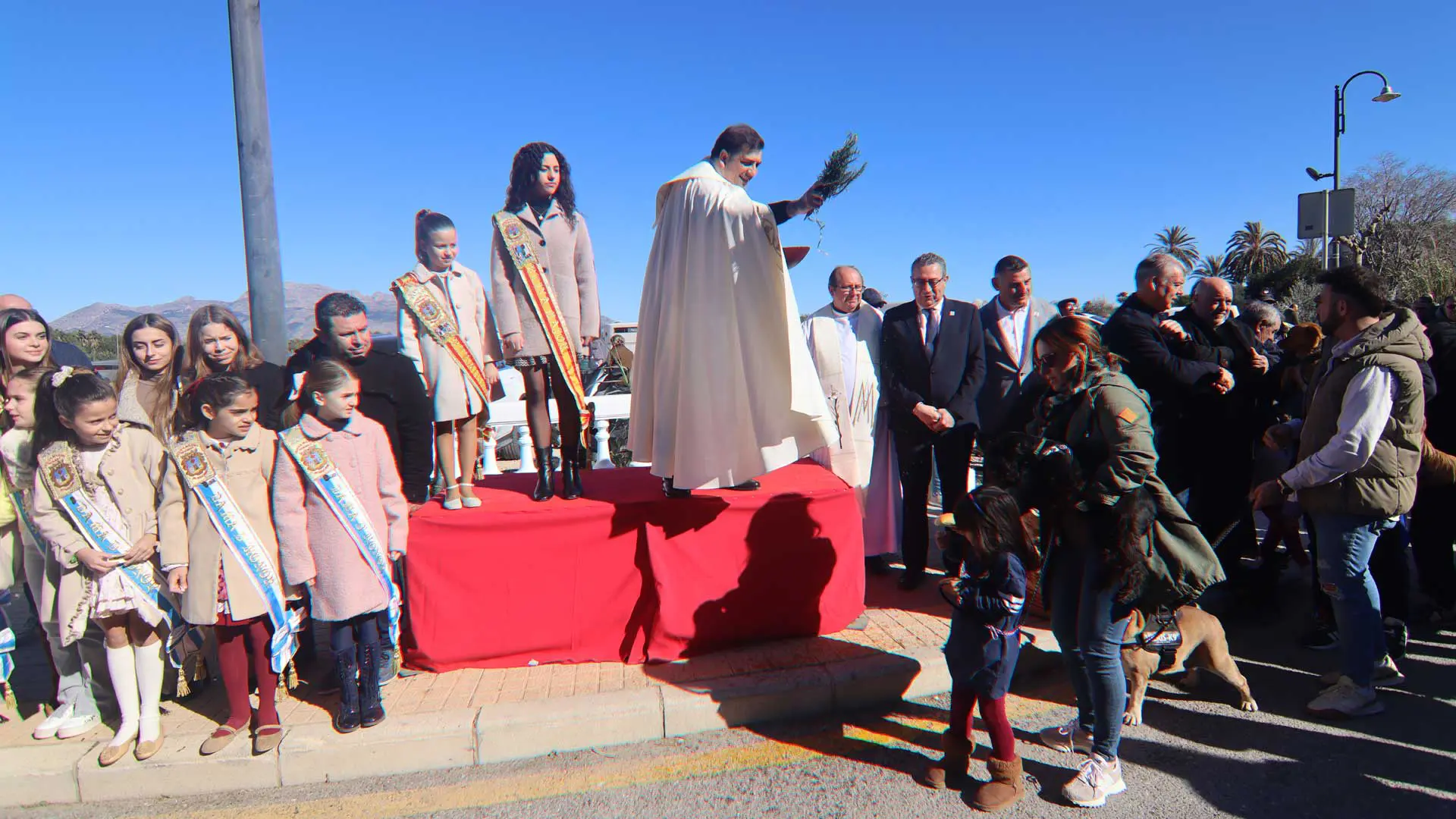 En la ceremonia se encontraba el alcalde Toni Pérez, así como el concejal de Fiestas, Jesús Carrobles, miembros de la corporación municipal, el presidente de la comisión de Sant Antoni, José María Fuster, así como el de les Festes Majors Patronals, Vicente Solaz, las reinas Angélica Morenilla y Daniela Talavera y sus damas de honor. También han asistido representantes de otras entidades festeras de la ciudad.