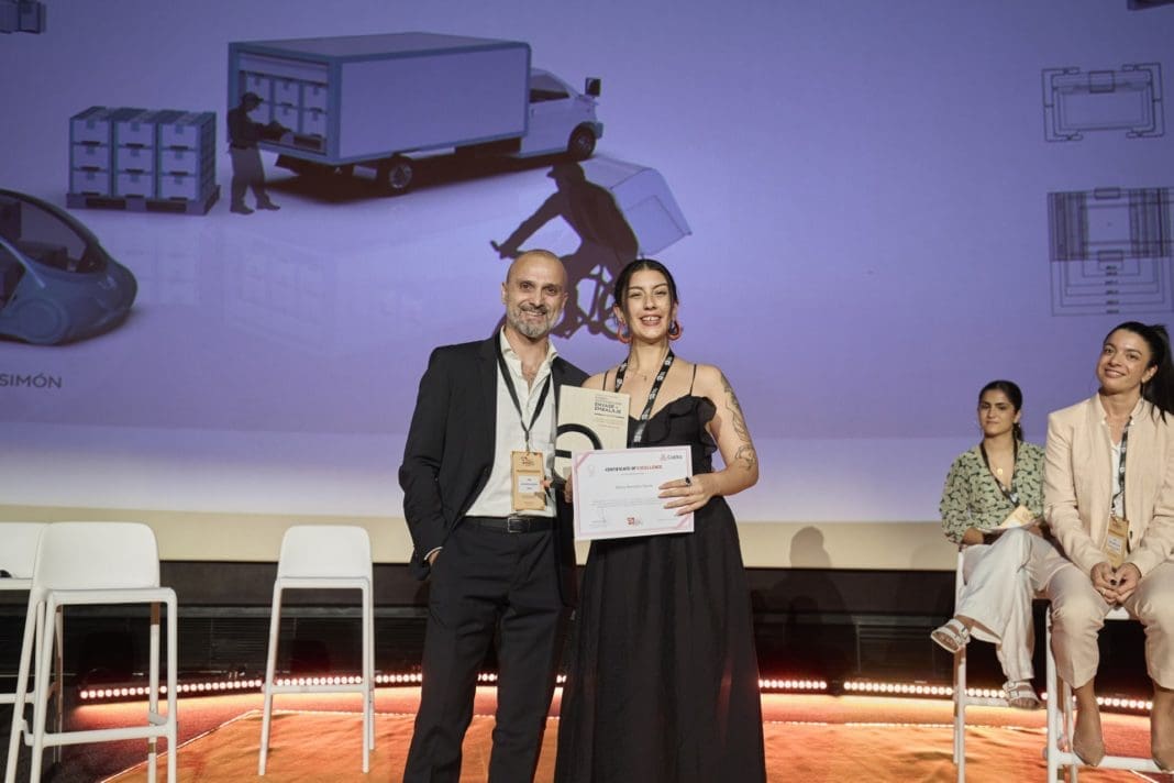 Aquí, los premios Accésit han sido otorgados a “Proyecto de optimización de la Caja Eco” de Margarita Oliver e Iván Pons y a “Caja Eco Encaja” de Pau Parera y Ferran Alzamora, ambos de la Escola d´Art i Superior de Disseny de les Illes Balears.