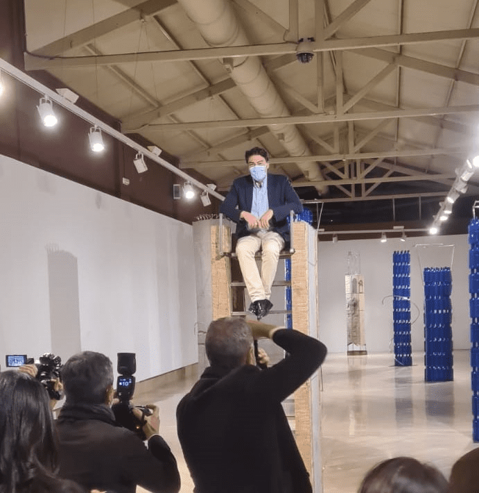 El escultor Juan Garaizabal ha donado al Ayuntamiento de Alicante una de las piezas del grupo escultórico que desde ayer se expone en la Lonja del Pescado bajo el título Memoria del Mar Nuestro: pasado y futuro. El alcalde, Luis Barcala, inauguró la muestra, que podrá visitarse hasta el 27 de febrero de 2022, y no dudó en encaramarse a una de las construcciones que, alzadas 3 metros del suelo, evocan la grandeza de las ciudades mediterráneas del pasado, confrontadas a imaginarias ciudades de futuro, para preguntarse: ¿seremos merecedores del gran legado histórico que los pueblos de esta órbita marina reflejaron en su arquitectura?