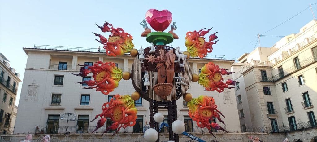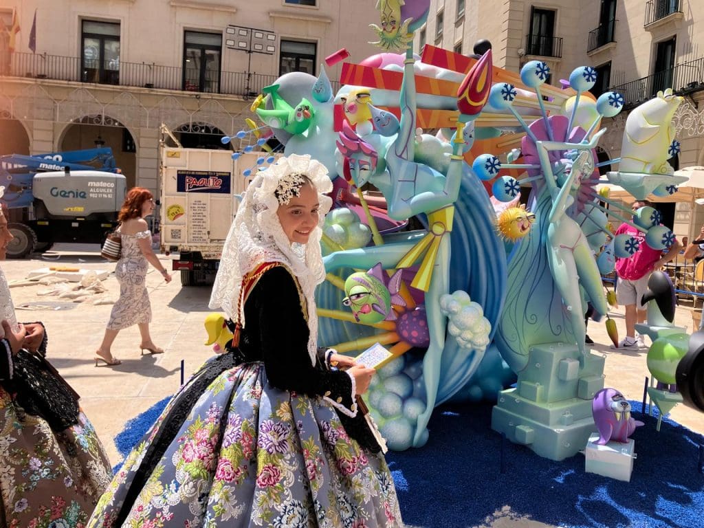«Ya conocíamos las maquetas, pero verlas instaladas en la plaza del Ayuntamiento creo que impresiona a cualquiera. Sobre todo por la gran magnitud que tiene esta Hoguera oficial «Identidad» que llena toda la plaza: Da la sensación de que la plaza está llena. Ayer veíamos cómo se iban subiendo las piezas, no tuvimos la oportunidad de ver cómo colocaban ese remate, pero cuando nos acercábamos a primera hora de la madrugada ya estaba colocada prácticamente toda la hoguera. Podíamos ver que iba a ser una gran hoguera y que la íbamos a recordar por su gran dimensión».