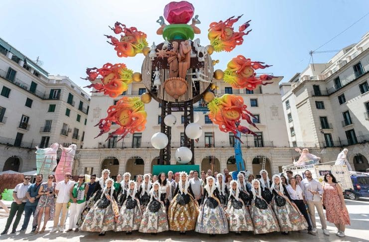 Las ‘Belleses del Foc’ y sus Damas han recibido dos detalles en su visita a los monumentos junto a la corporación local y han disfrutado de la obra infantil ya terminada