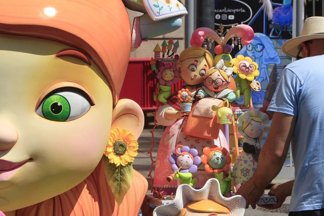 El artista Pedro Espadero ultima los detalles de la hoguera oficial de Alicante, ‘Identidad‘, en una jornada de intensa actividad en las comisiones de la ciudad para avanzar en el ensamblaje de sus monumentos.