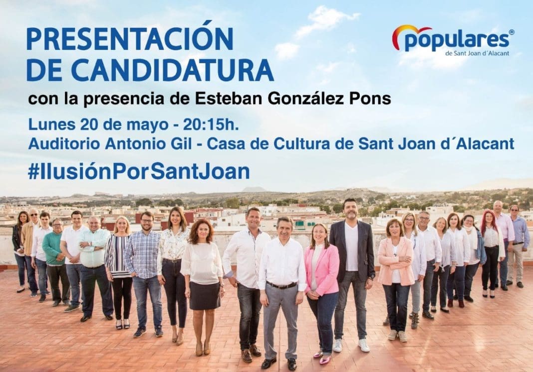 Los populares santjoaners contarán con un invitado de excepción en el acto de presentación de su candidatura para las elecciones municipales. Será el eurodiputado y número 2 de la candidatura del Partido Popular a las elecciones europeas, Esteban González Pons, apoyará a Manuel Aracil como candidato a la Alcaldía.