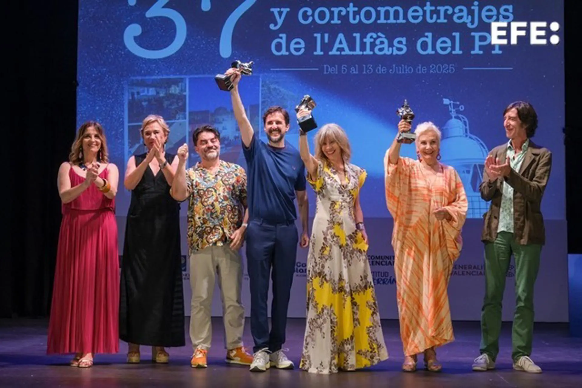 ALFAZ DEL PI (ALICANTE) 05/07/2025. La actriz Josele Román recoge una ´Mención Especial´ durante la gala de clausura del 37 Festival de Cine de Alfaz del Pi, hoy sábado en la localidad alicantina. EFE / Pablo Miranzo