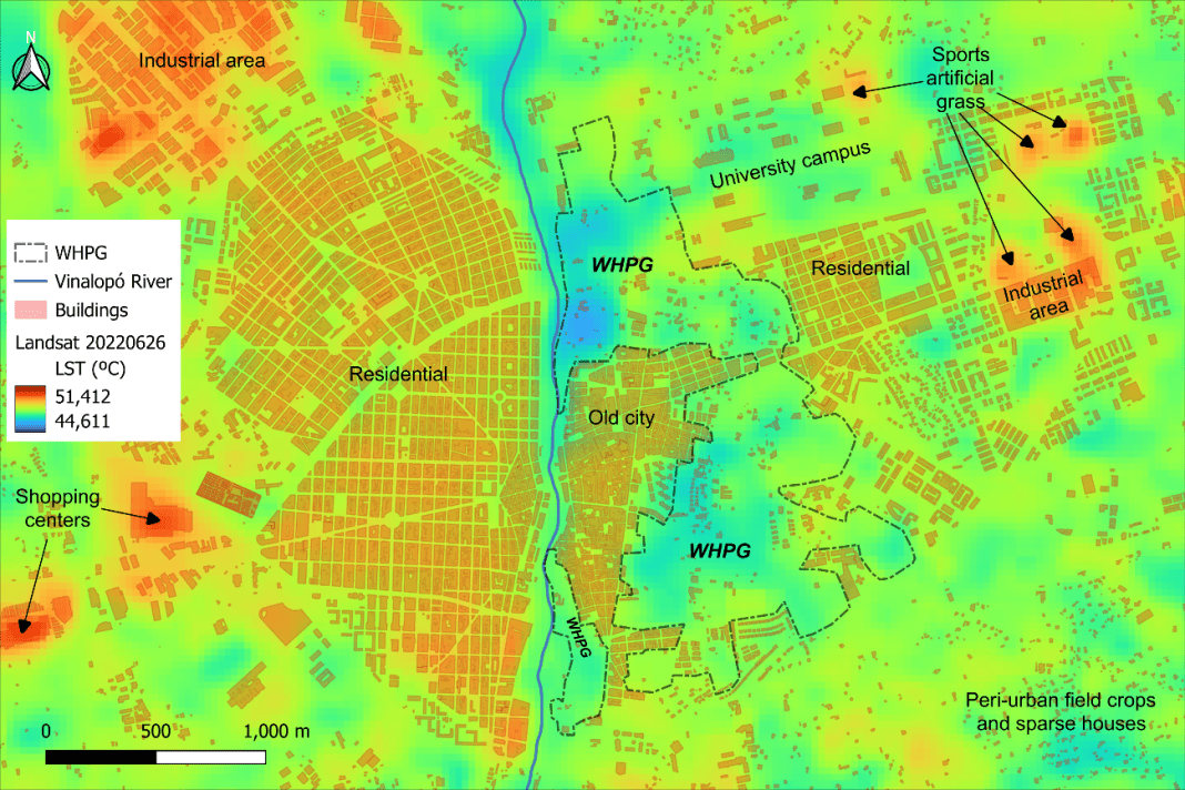 Según ha explicado el investigador de la UMH y autor del artículo el profesor Ignacio Meléndez Pastor, “el palmeral tradicional Patrimonio de la Humanidad, con su característica estructura de huertos de palmeras y sistema de riego histórico, es capaz de reducir significativamente la temperatura (LST-Land Surface Temperature) dentro de la ciudad, minimizando la isla de calor urbana.