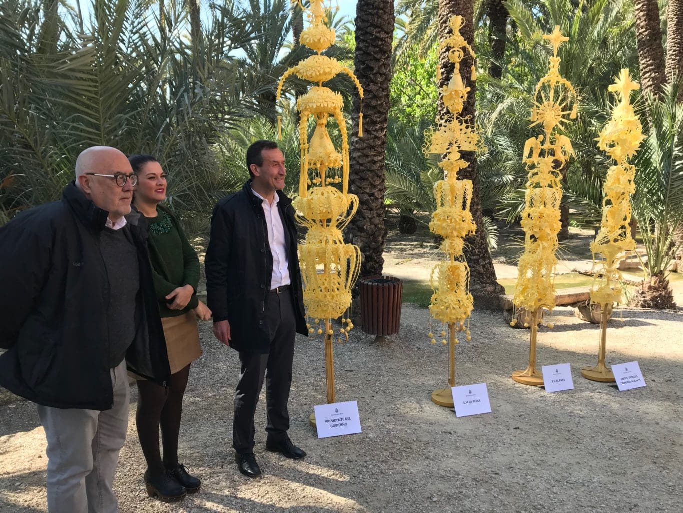 “Cumplimos con una tradición centenaria, única en el pueblo de Elche, que forma parte de la identidad colectiva de los ilicitanos y que tenemos que agradecer a las familias que de forma artesanal continúan haciendo esta tarea año tras año”, señaló el alcalde de Elche, Carlos González, durante la presentación de las palmas y ramos artesanos que se envían al Papa; a los Reyes; al presidente del Gobierno; al obispo de Orihuela-Alicante; al presidente de la Generalitat Valenciana; al alcalde de Jaca, ciudad hermanada con Elche; y al obispo de Menorca, de origen ilicitano.