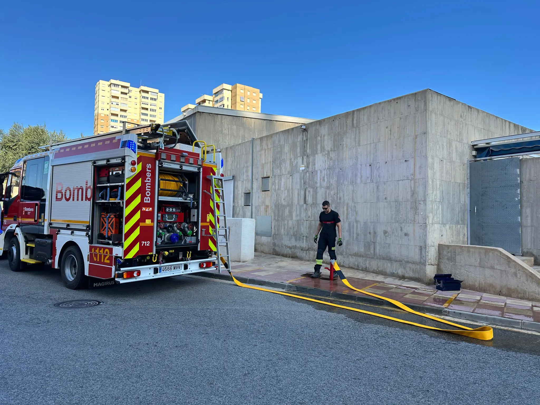 El pasado martes se llevaron a cabo trabajos de evaluación y prueba de la columna seca del edificio «Noray», sito en el número 74 de la Avenida Jaume I El Conqueridor.