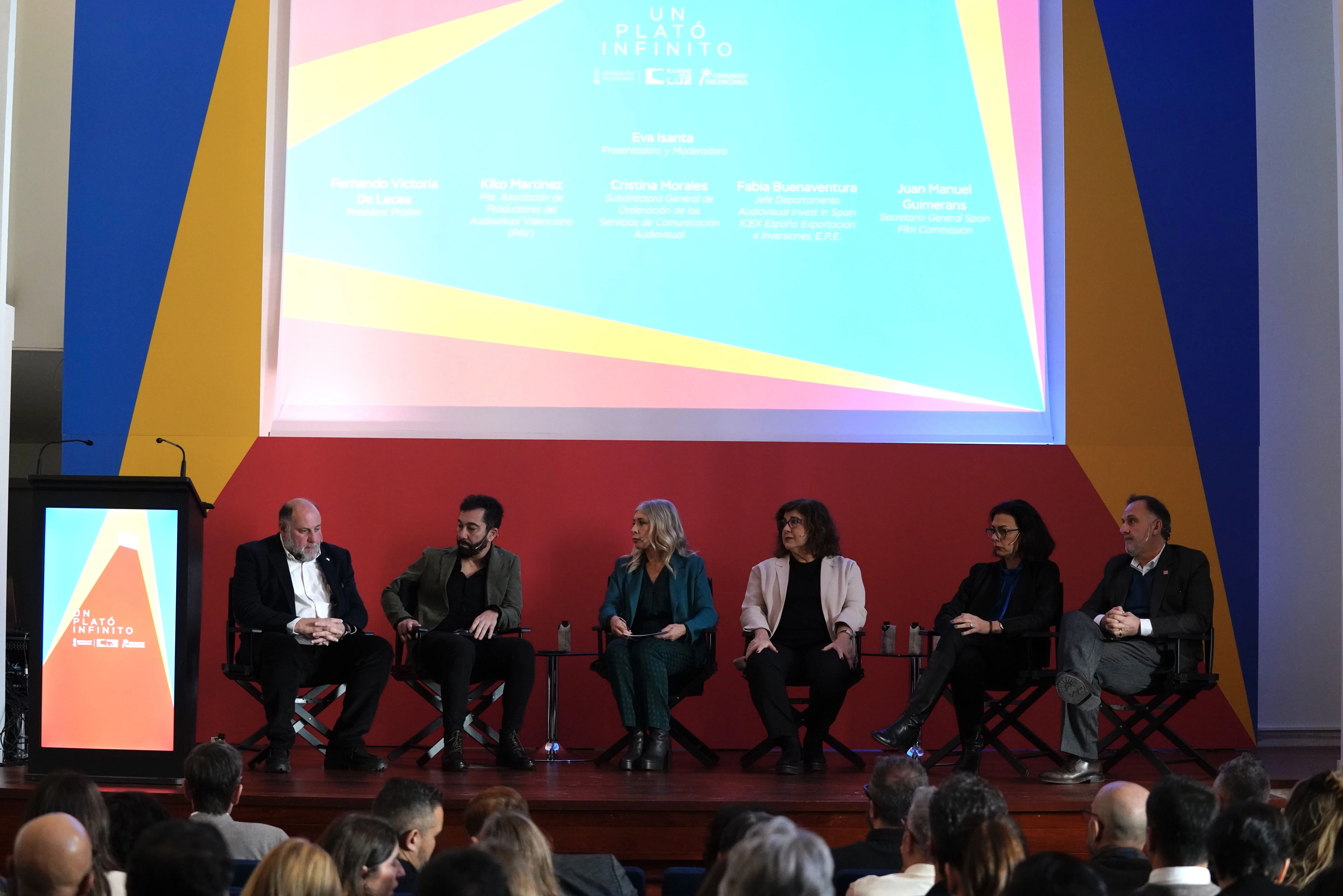 Las posibilidades del sector se han puesto a debate en la mesa redonda ‘Los rodajes nacionales e internacionales en España y la Comunidad Valenciana: necesidades y aspectos a mejorar’ moderada por la presentadora y que ha contado con la presencia de: Fernando Victoria de Lecea, presidente de Profilm, Kiko Martínez, presidente de la Asociación de Productores del Audiovisual Valenciano (PAV), Cristina Morales, subdirectora general de Ordenación de los Servicios de Comunicación Audiovisual, Fabia Buenaventura, jefe del Departamento Audiovisual Invest in Spain y Carlos Rosado, presidente de la FLM Commission & Andalucia Film Commission.