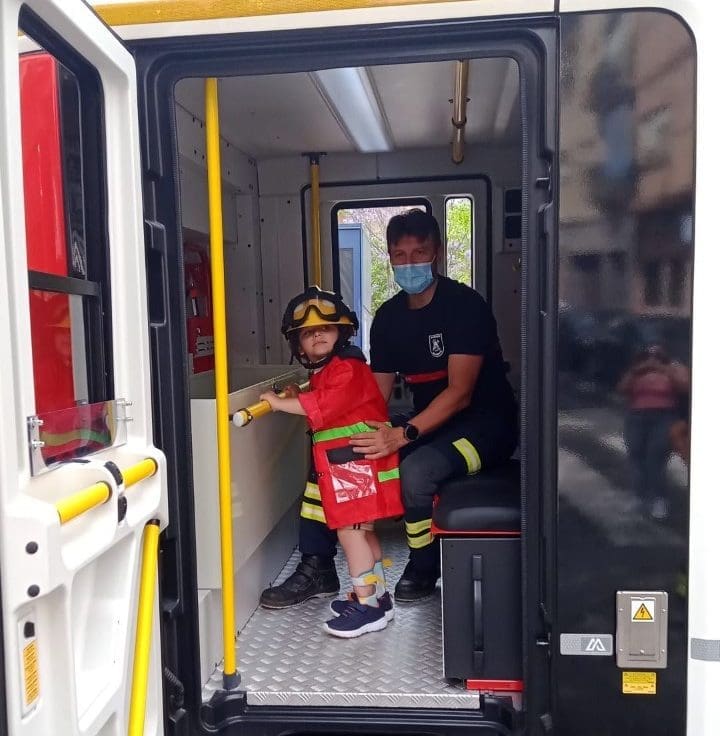 Los efectivos del SPEIS han acudido al Cashmob Solidario para conocer a Pablo, que es un admirador de los bomberos y subirlo a su camión, dando así visibilidad a esta enfermedad que suele aparecer en edad adulta, pero en el caso de Pablo ha sido en sus primeros años de vida.