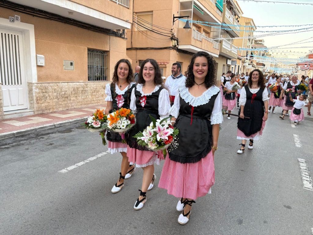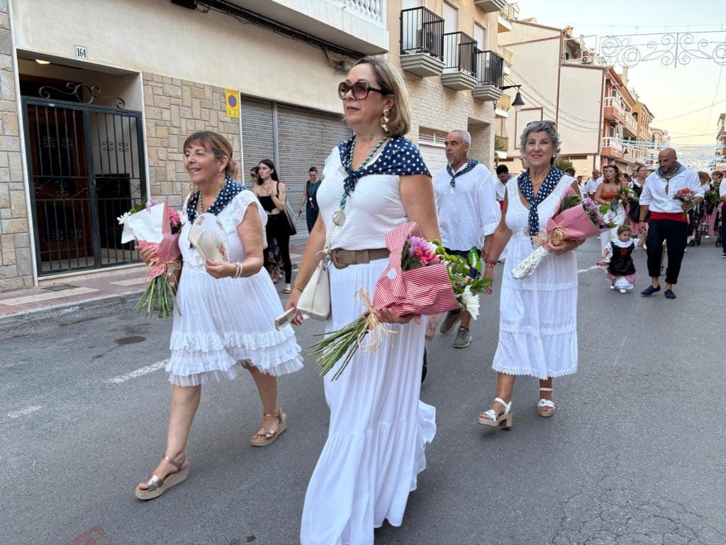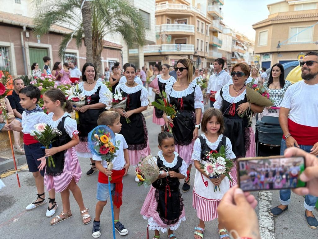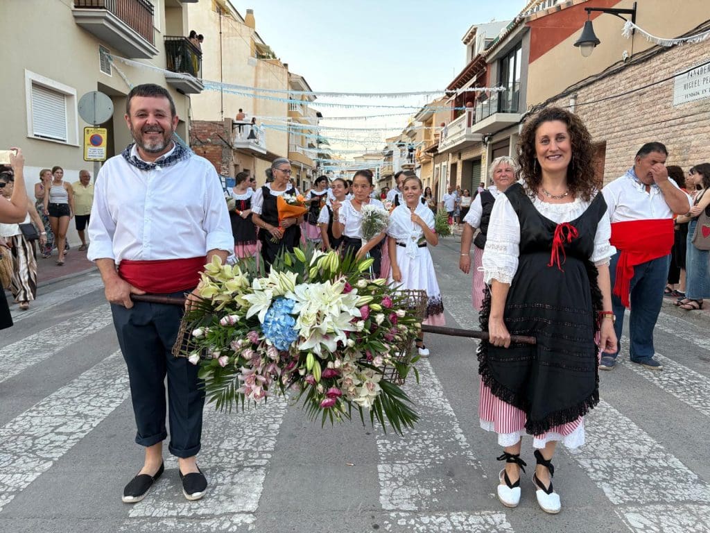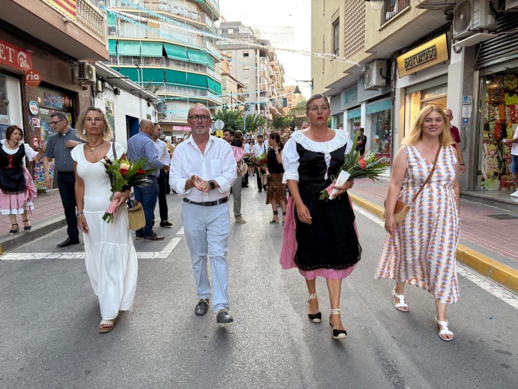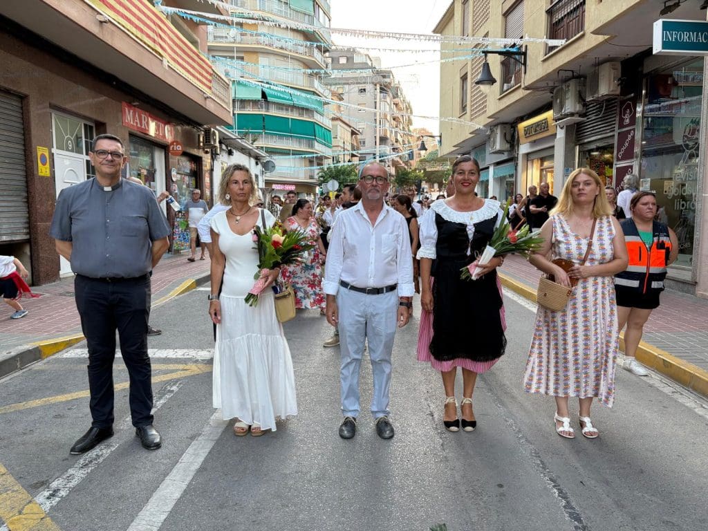 El Campello respondió ayer a la llamada para participar en la ofrenda floral. Fue un acto repleto de fervor y emociones que superó con mucho la participación de otros años, sin duda motivada por la salida a la calle de la centenaria talla original, que llevaba 47 años sin procesionar.