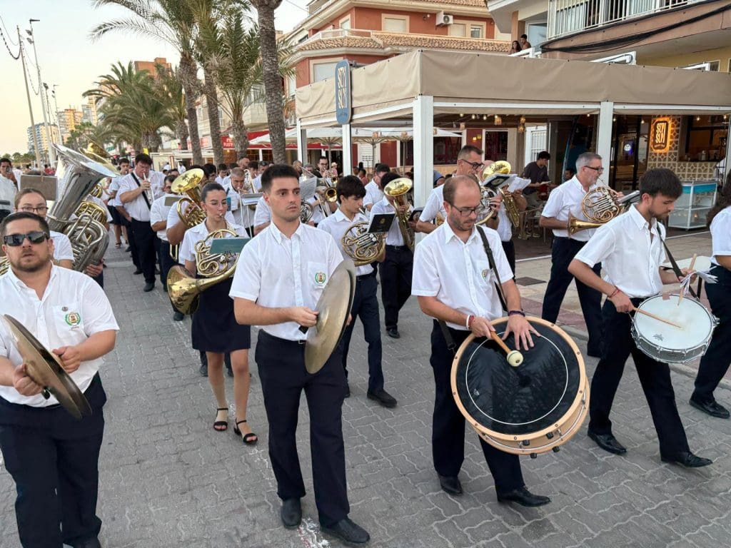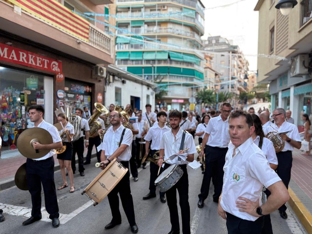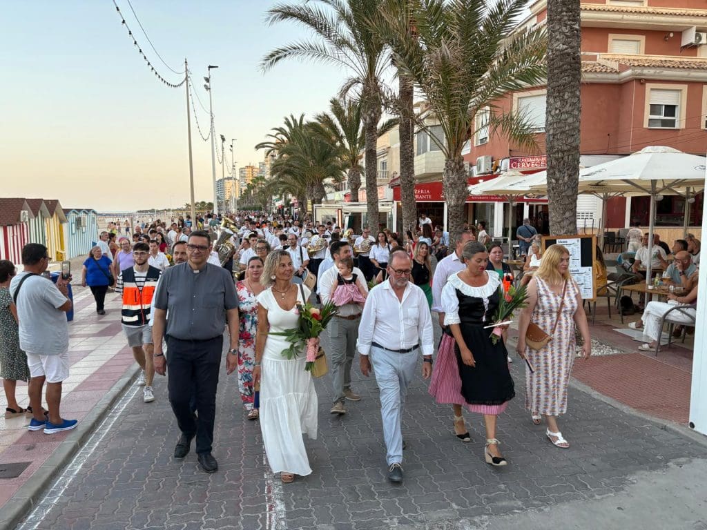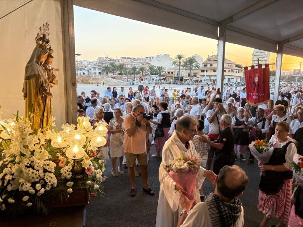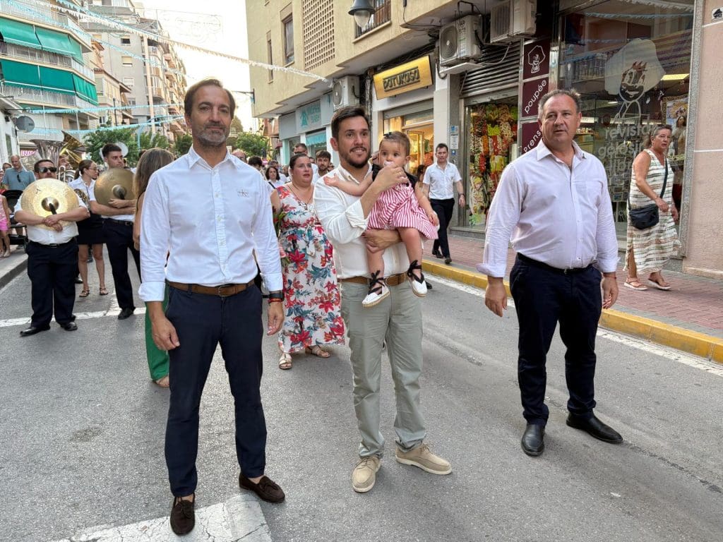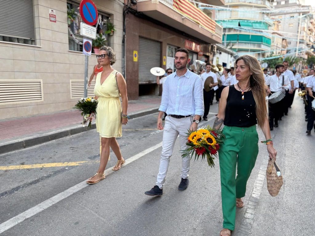 Colectivos cívicos, devotos, integrantes de la Cofradía de Pescadores y autoridades locales, encabezadas por el alcalde Juanjo Berenguer y la concejala de Fiestas y Tradiciones, Marisa Navarro, acompañados por ediles del PP, PSPV-PSOE, Vox, Compromís y Per El Campello.