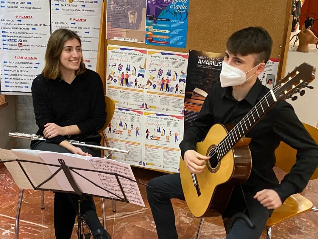 La colectiva fue inaugurada el jueves con presencia del alcalde Juanjo Berenguer y la concejala de Cultura Dorian Gomis (PP), en un agradable ambiente en el que decenas de personas valoraban las obras y atendieron las piezas musicales protagonizadas por el dúo integrado por María Antolín (flauta) y Álvaro Guerra (guitarra).