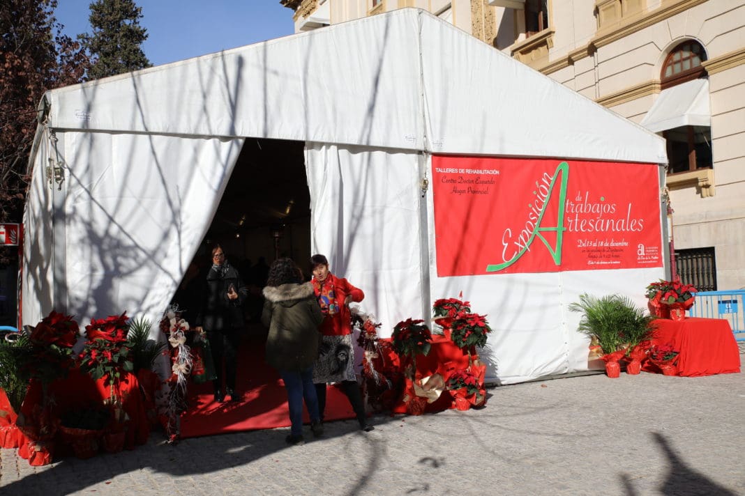 Un año más, la solidaridad, la ilusión y el espíritu de superación inundan los jardines del Palacio Provincial con la tradicional muestra de trabajos artesanales elaborados por los usuarios de la Unidad de Geriatría del Hogar Provincial y del Centro Doctor Esquerdo. El presidente de la Diputación de Alicante, César Sánchez, y el diputado de Bienestar de las Personas, Miguel Zaragoza, han inaugurado esta mañana esta exposición que permanecerá abierta al público desde hoy y hasta el próximo lunes 18 de diciembre.