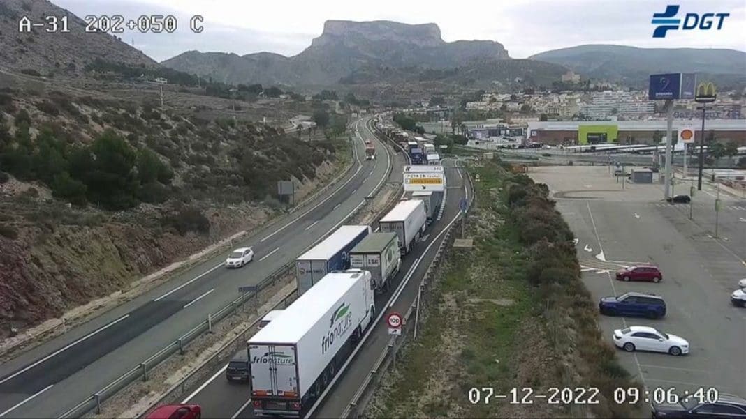 Según la Dirección General de Tráfico, la circulación se ha desviado por el polígono industrial Salinetas y se han generado colas de hasta ocho kilómetros. De hecho, los conductores que circulan por la A-31, han quedado parados en la localidad de Sax.