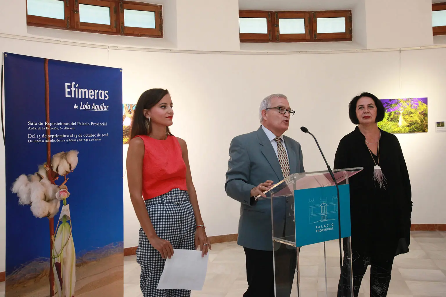 El diputado de Cultura, César Augusto Asencio, ha inaugurado esta mañana la muestra junto a la comisaria Natalia Torres y la artista. Asencio ha hecho especial hincapié en la colaboración de la Diputación de Alicante con la semana de la moda, “un evento que se consolida año tras año en su labor de ofrecer a la provincia actividades de interés social y cultural relacionadas con las tendencias. Por ese motivo, es un orgullo para la institución dar el pistoletazo de salida de Alicante Fashion Week 2018 con esta potente y singular exposición de Aguilar”.