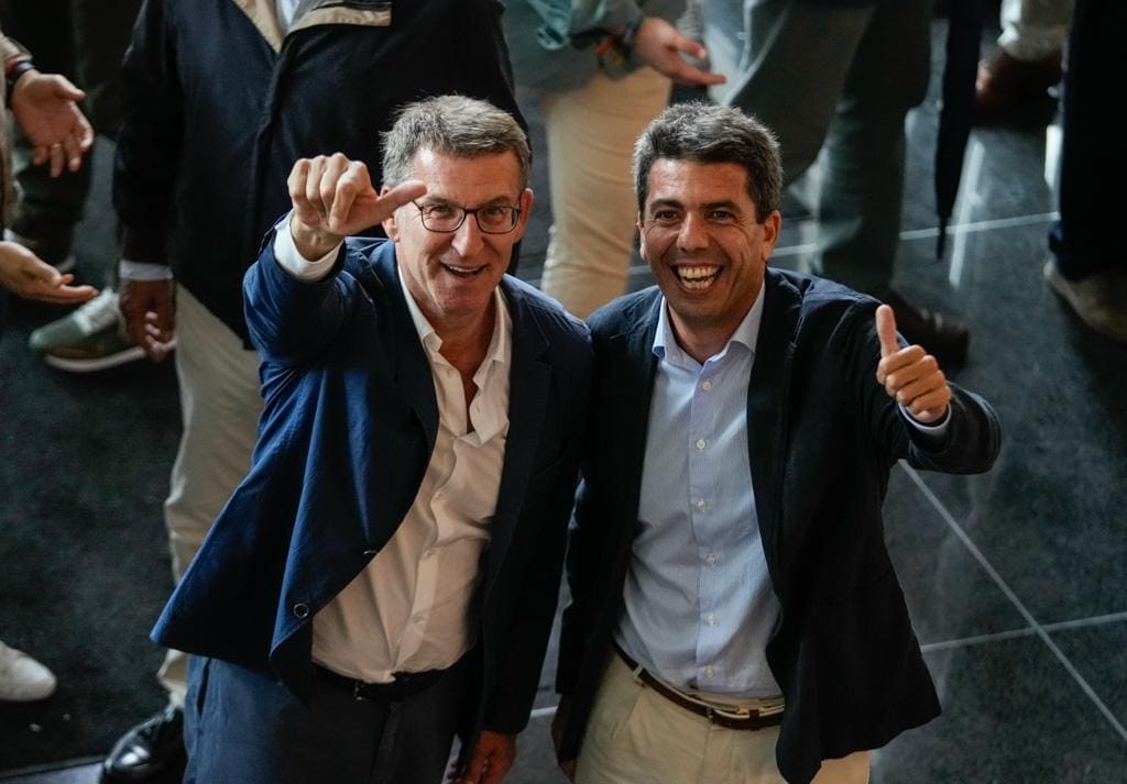 El presidente del Partido Popular, Alberto Núñez Feijóo, y el presidente del PP de la Comunitat Valenciana, Carlos Mazón, han intervenido en la reunión de la Junta Directiva Autonómica.
