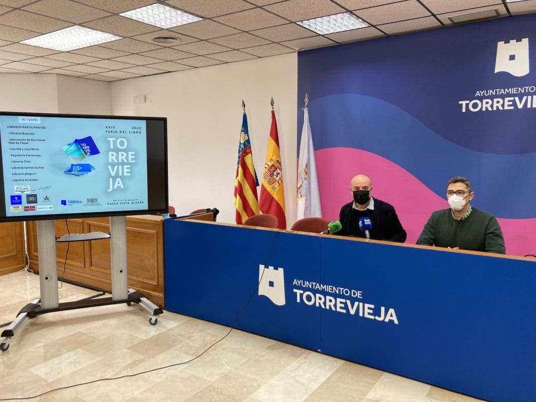 El concejal de Cultura del Ayuntamiento de Torrevieja, Antonio Quesada, y el gerente del Instituto Municipal de Cultura “Joaquín Chapaprieta”, Miguel Fernández, han presentado en la mañana de hoy la XXIV edición de la Feria del Libro de Torrevieja, que se celebrará en el Paseo Vista Alegre del sábado 9 al lunes 18 de abril, en horario de 10:30 a 14:00 horas y de 17:30 a 22:00 horas.
