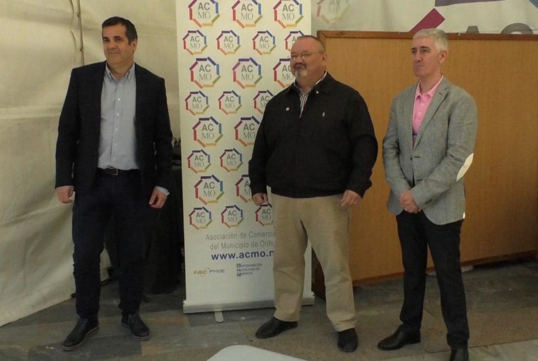 El concejal de Comercio, Miguel Ángel Fernández, junto a Trino Belmar, vicepresidente de la Asociación de Comerciantes del Municipio de Orihuela (ACMO), ha inaugurado esta mañana la Feria Outlet de Comercio de Orihuela, que estará instalada en la Glorieta Gabriel Miró del 10 al 12 de noviembre, coincidiendo con la Ruta de la Tapa y el Gintonic de la Concejalía de Turismo, que también comienza hoy.