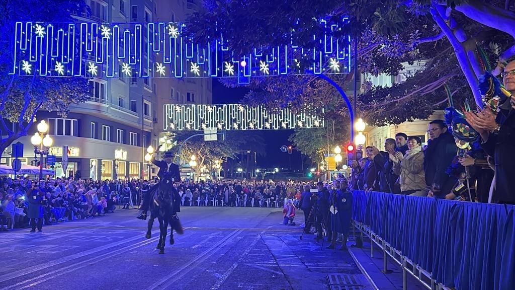 Un nuevo cuerpo de baile ha anunciado al Bando Moro. Sobre una segunda carroza, los capitanes cristianos y moros -adultos e infantiles- de Villafranqueza-El Palamó, y las Abanderadas mayores de Altozano y Rebolledo. Las han escoltado dos caballos de doma. Las diez filás de la Media Luna la han cerrado ‘Los Pacos’, de Altozano, Rebolledo, San Vicente del Raspeig, Almoradí, Aigües, El Campello y Benamaurel (Granada).