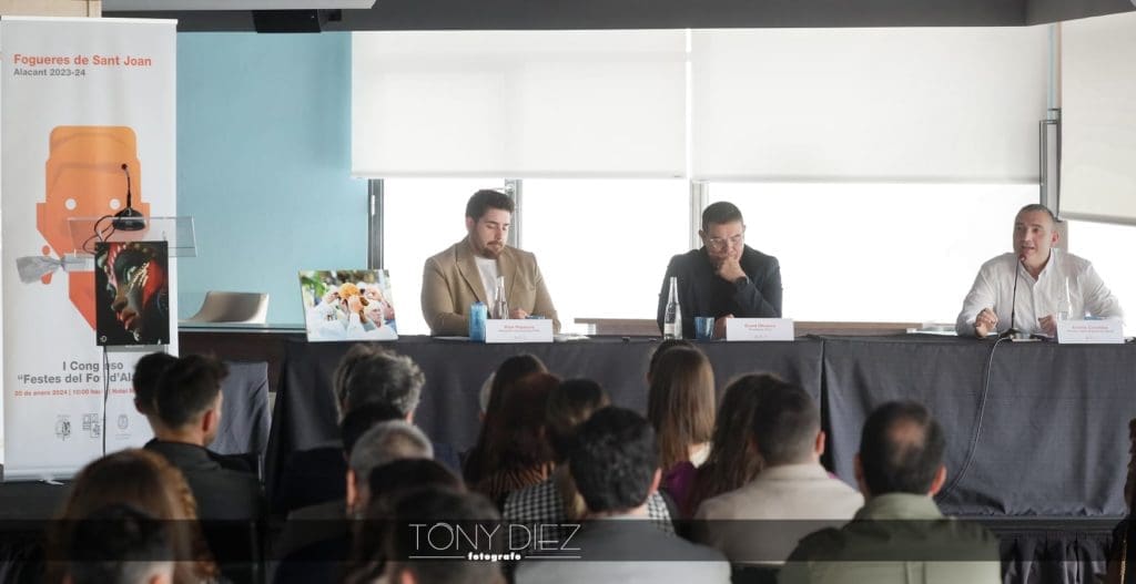 La Federació de Fogueres de Sant Joan ha reunido en la primera edición del congreso “Festes de foc” a las localidades de la provincia de Alicante en las que se organizan fiestas de hogueras o fallas. En concreto han acudido la Federació de Fogueres i Barraques de San Vicente del Raspeig, la junta central fallera de Elda, la hoguera ‘La Cala’ de Benidorm, la hoguera ‘Los molinos del calvario’ de Torrevieja, la hoguera de Sant Joan d’Alacant y la falla Sant Jaume de Onil, además de la Federació de Alicante como organizador.