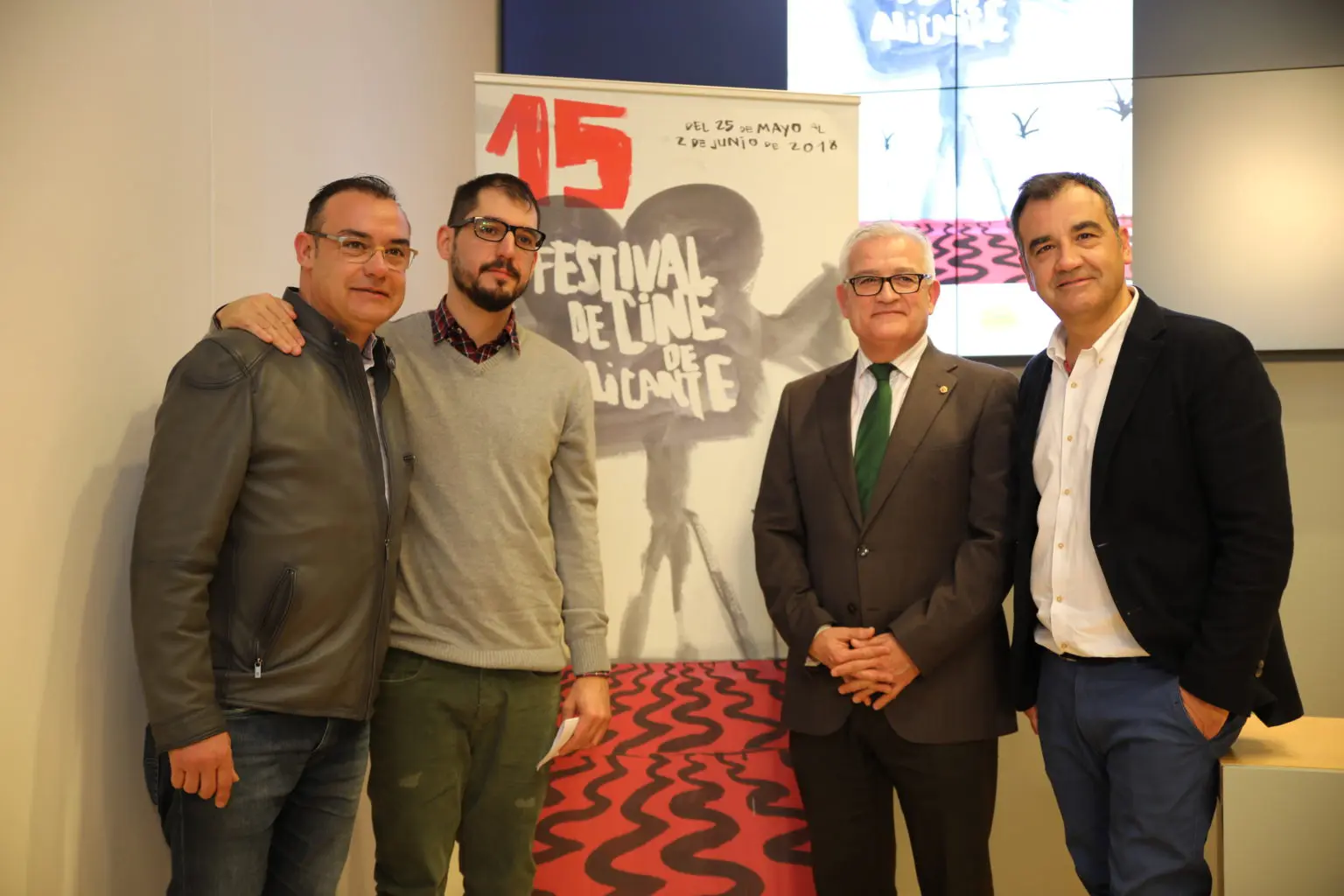 El diputado de Cultura, César Augusto Asencio, presentó ayer el cartel de la XV edición del Festival de Cine de Alicante. Al acto asistió el director del certamen, Vicente Seva, quien dio a conocer algunos detalles de la obra, premiada con 1.200 euros, así como el autor del cartel, el artista Raúl Ariño.
