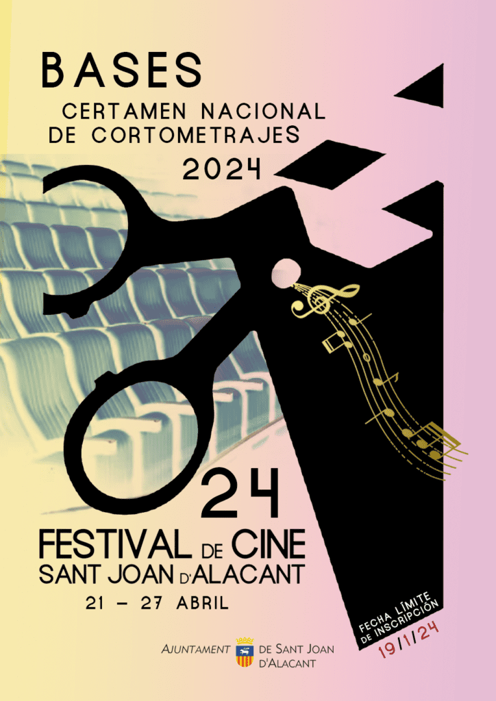 El Certamen Nacional de Cortometrajes, promovido por la Concejalía de Cultura del Ayuntamiento de Sant Joan d’Alacant y calificador para los Premios Goya, se celebrará del 21 al 27 de abril de 2024. Los creadores de cortos interesados en participar en el concurso ya pueden presentar su solicitud a través de las diferentes plataformas de inscripción, ya que plazo está abierto desde este lunes, 27 de noviembre, hasta el 19 de enero de 2024.